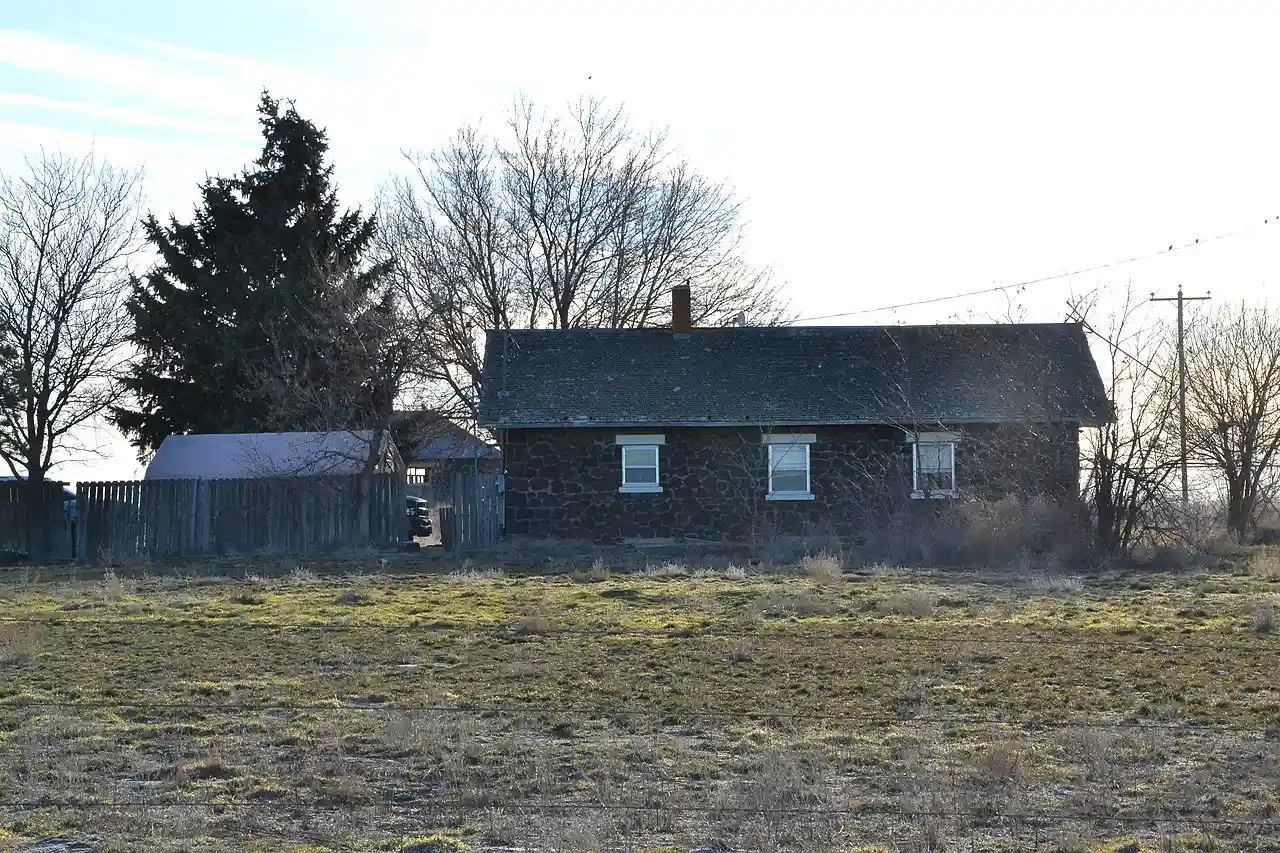 The Merritt Fry Farm is a historic farm located west of Jerome, Idaho, United States. The farm includes three stone buildings: a house, a bunkhouse, and a barn. The house and bunkhouse were built by prominent Jerome stone mason H. T. Pugh and illustrate his ability to match stones, join them with mortar, and use concrete for decoration. Farmer Merritt Fry had the bunkhouse built in 1916; it served as his temporary home until he could build a more permanent house. While farmers frequently built temporary farmhouses, Fry's is unusual in that it uses stone rather than a less sturdy material. The barn followed the bunkhouse in 1926, and Fry's permanent farmhouse was completed in 1930. Read more on Wikipedia