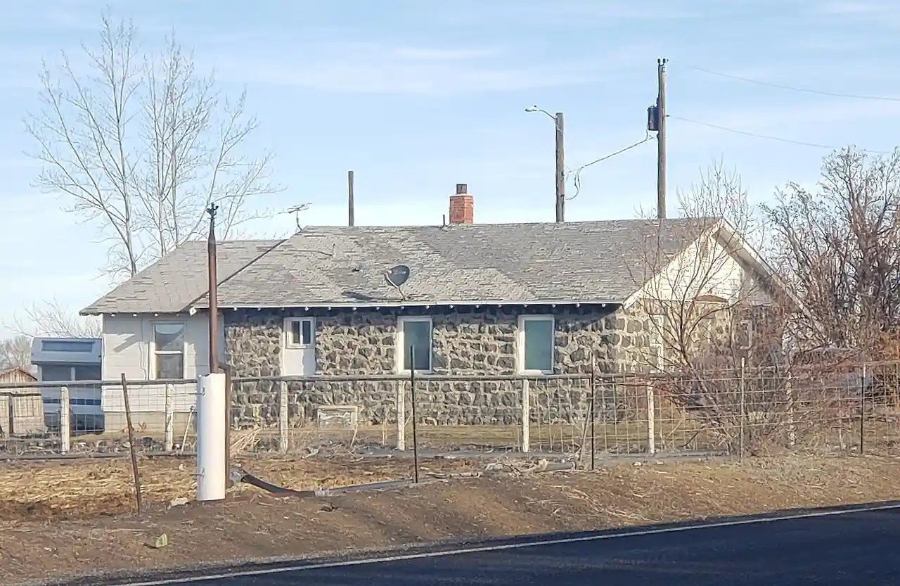 The O. J. Daniels House is a historic house located south of Jerome, Idaho. The lava rock house was constructed circa 1928 for farmer O. J. Daniels. While the home's craftsmanship resembles works by stonemason Marland Cox, its builder has not been determined. The home's vernacular design features symmetrical windows topped by flat rock arches, a stone lintel above the front door, and a gable roof. Read more on Wikipedia