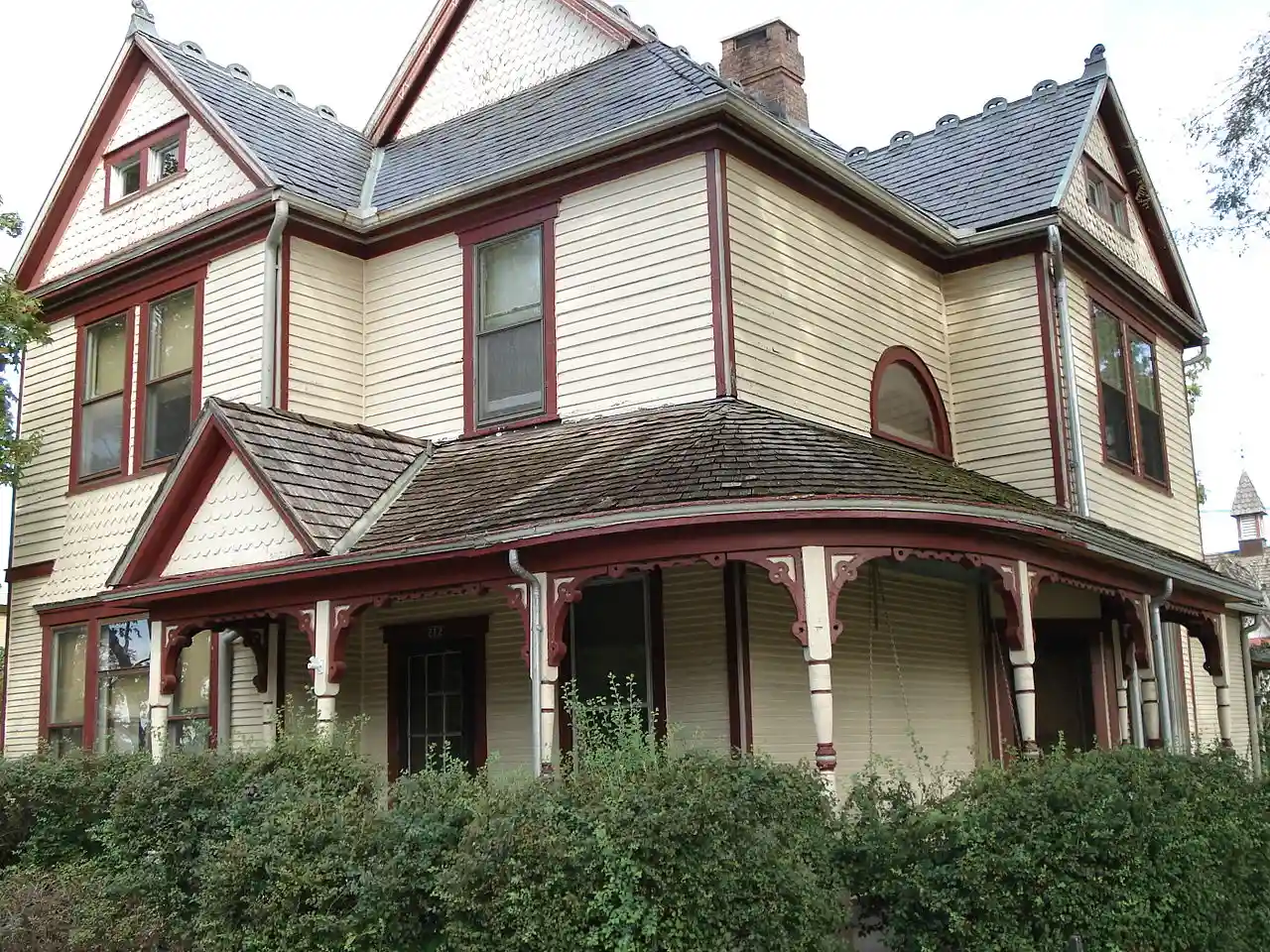The Henry Ahrens House is a historic house located at 212 East University Avenue in Champaign, Illinois. The house was built in 1893 for local businessman Henry Ahrens; it still remains in his family. Architect Seely Brown, who ran a well-regarded practice in Champaign, designed the Queen Anne house. The -story house has an asymmetrical plan with a multi-component roof that includes both hipped and gabled sections. The gable ends are decorated with patterned wooden shingles, which are also used on a porch gable and the hood of a three-sided bay window. The wraparound front porch is supported by turned columns; brackets with scalloped and half-circle decorations adorn the tops of the columns. Read more on Wikipedia