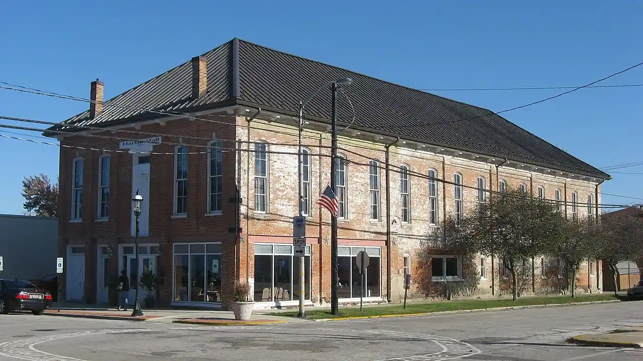 Harlan Hall is a historic opera house located at 603 Locust St. in Marshall, Illinois. The opera house opened in 1872 to provide a venue for theatrical performances in Marshall. The building has an Italianate design with tall, narrow windows, wide bracketed eaves, and a steeply sloping roof. Both local and traveling theatrical acts performed in the theater, which also hosted concerts, public meetings, and other events. The opera house had a livery stable on its first floor for its patrons' horses, an unusual feature for contemporary theaters. In 1904, B. F. Johnson purchased the building and converted it to a movie theater; while it still served as a civic auditorium, the building no longer showed theatrical performances after this point. The building has since held a Moose Lodge, and its first floor has been converted to a commercial space. Read more on Wikipedia
