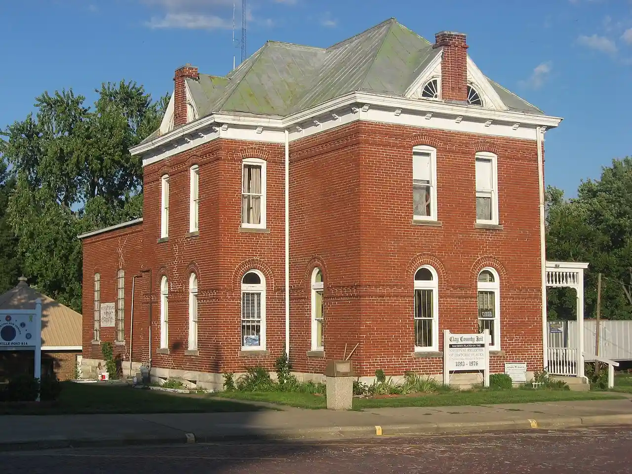 The Clay County Jail is a historic former jail located at 195 Main St. in Louisville, Illinois. Built in 1893, the jail was the third used by the county. The brick jail was designed in the Queen Anne style; its design features gabled dormers at the front of its hip roof and a spindlework front porch. The jail building also included the county sheriff's residence, a common arrangement which allowed the sheriff to oversee the prisoners at all times. The jail is now used as the Clay County Historical Society Museum. Read more on Wikipedia