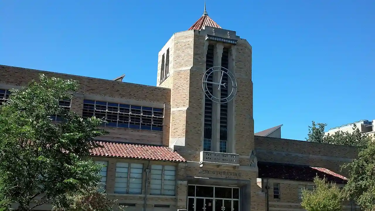 The Health Education Building, also known as the McAfee Gym, is a historic building located on the campus of Eastern Illinois University in Charleston, Illinois. The building was constructed in 1938 and designed by Peoria architecture firm Hewitt, Emerson & Gregg; C. Herrick Hammond served as the state's supervising architect on the project. The building's design incorporates elements of several contemporary architectural styles; it features an Art Deco octagonal clock tower and projecting pilasters, while its flat roof and concrete coursing are representative of the Art Moderne style and its steel ribbon windows are inspired by the International Style. The university used the new building to expand its physical education program into a full course of study, which included the establishment of a women's physical education program. The building was also used to host sporting events, student performances, and school dances. In the 1960s, the construction of Lantz Arena and a new classroom building for health education resulted in the relocation of many of the programs held in the building. The building was officially renamed the Florence McAfee Women's Gymnasium in 1965, after the first head of women's athletics at the university. Read more on Wikipedia