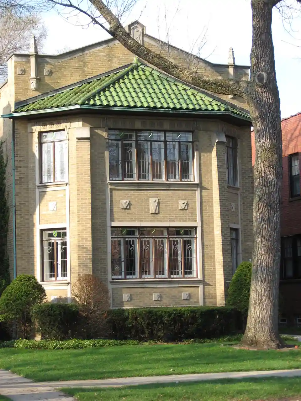 The Buildings at 2517, 2519, and 2523 Central Street are three related apartment buildings at 2517, 2519, and 2523 Central Street in Evanston, Illinois. The three two-flats were built as part of one development project in 1927. Architect Arthur Jacobs designed all three buildings using a consistent theme, so that the three buildings would have different designs but appear as parts of a complex. Common features to each building include a light-colored brick exterior, a projecting front facade, stone trim, and green tile roofs. All three buildings have a vertical emphasis, which is created by either buttresses or piers. Each building has an ornate roof line; 2517 has a parapet crested by pinnacles, 2519 has brick piers capped by urns which extend above the roof, and 2523 has a parapet with limestone coping and pinnacles. Read more on Wikipedia