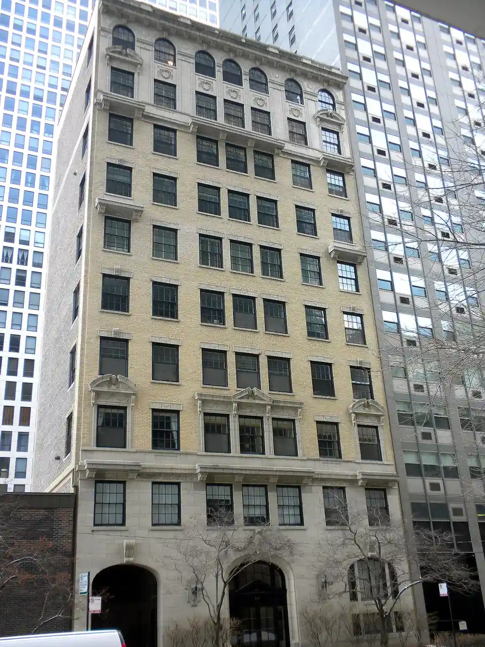 The Building at 257 East Delaware is a historic apartment building located at 257 East Delaware Place in the Near North Side neighborhood of Chicago, Illinois. The building was built in 1917 during a wave of luxury apartment construction on the Near North Side. Architect John Nyden designed the Renaissance Revival building, which was one of Chicago's first luxury apartments designed in the style. Like most skyscrapers of the area, the ten-story building is split into three parts visually; the upper two and lower two floors are faced with terra cotta and are connected by a brick shaft. The building is topped with a cornice and balustrade. Terra cotta lintels and decorations add an Adamesque influence to the building. Read more on Wikipedia