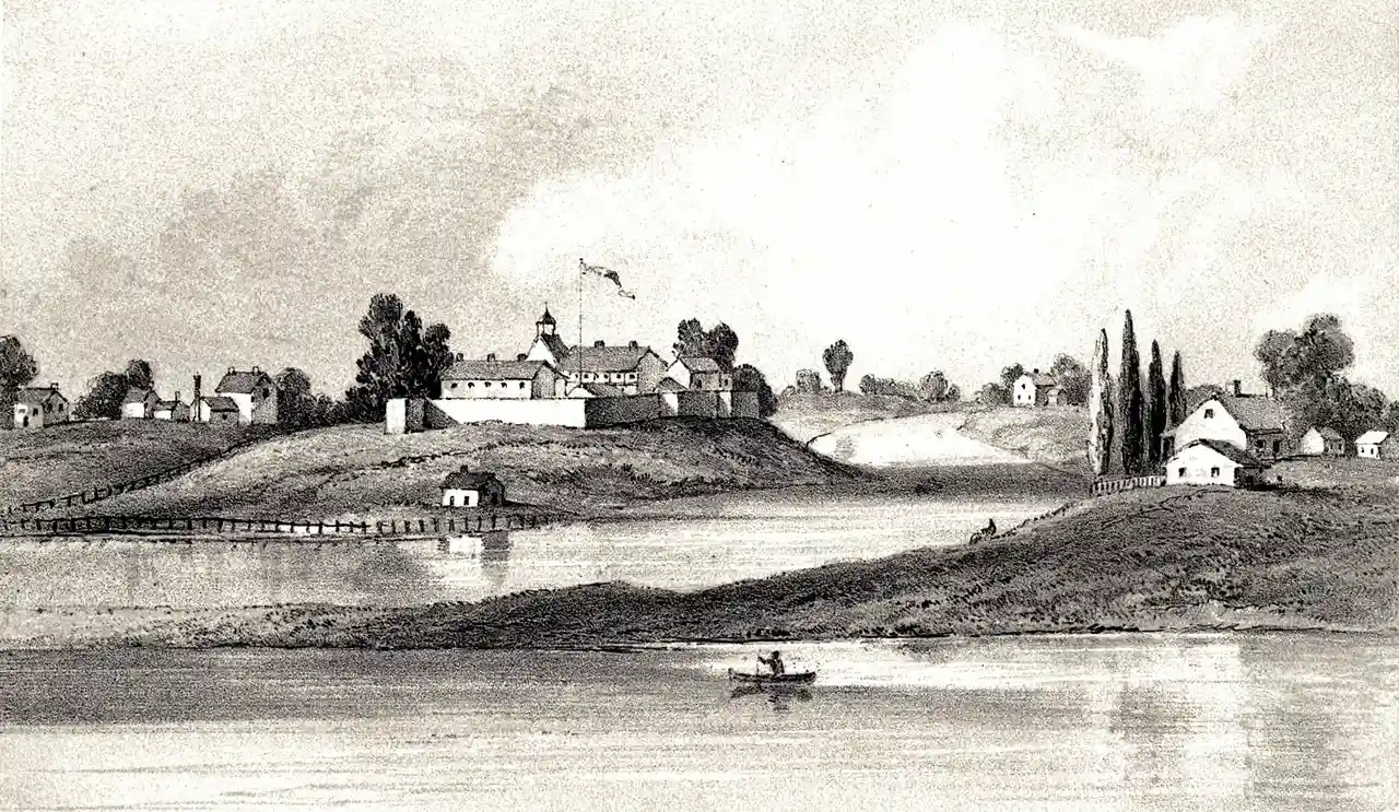 Fort Dearborn was a United States fort, first built in 1803 beside the Chicago River, in what is now Chicago, Illinois. It was constructed by U.S. troops under Captain John Whistler and named in honor of Henry Dearborn, then United States Secretary of War. The original fort was destroyed following the Battle of Fort Dearborn during the War of 1812, and a replacement Fort Dearborn was constructed on the same site in 1816 and decommissioned by 1837. Read more on Wikipedia