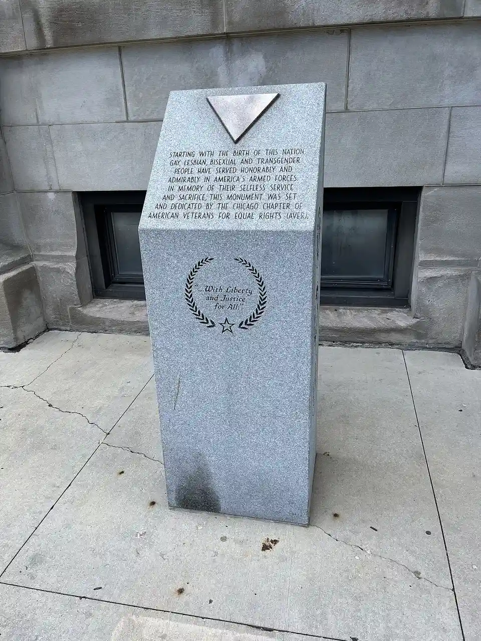 A monument commemorating LGBT veterans is installed in Boystown, Chicago, in the U.S. state of Illinois. The memorial was dedicated by the Chicago chapter of American Veterans for Equal Rights in 2017. Read more on Wikipedia