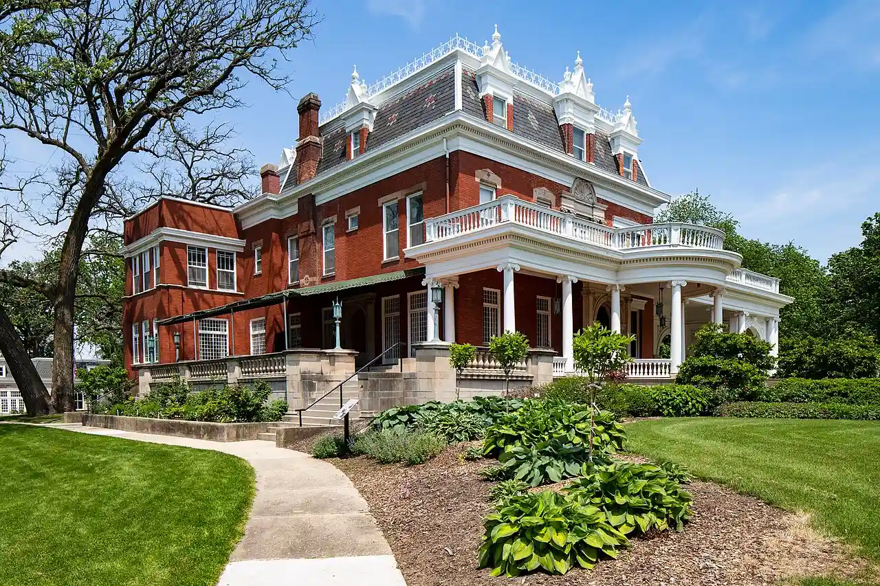 The Ellwood House was built as a private home by barbed wire entrepreneur Isaac Ellwood in 1879. It is located on First Street in DeKalb, Illinois, United States, in DeKalb County. The Victorian style home, designed by George O. Garnsey, underwent remodeling in 1898-1899 and 1911. The house was originally part of which included a large stable complex known as "Ellwood Green." Isaac Ellwood lived here until 1910 when he passed the estate to his son, Perry Ellwood. Read more on Wikipedia