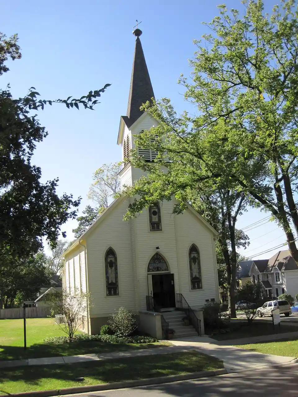 Immanuel Hall, previously known as Immanuel Evangelical Church, is a historic Late Gothic Revival church in the Carpenter Gothic style located in Hinsdale, Illinois. It was constructed in 1900 by Lutheran German immigrants for three thousand dollars. Services in the one-story building were conducted in the German language until the 1930s, when the church became affiliated with the Evangelical and Reformed Church and began services in English. The congregation moved to a new building in Burr Ridge, Illinois, in 1964. The former church in Hinsdale was then used as an office for the United Church of Christ. The church grounds were sold in 1982, and the building operated as a Montessori method preschool. In 1999, the building was again sold, and targeted for demolition by the new owners. A deal was brokered between the owners and the Hinsdale Historical Society to preserve the main church building. The remaining building was added to the National Register of Historic Places in early 2001. The building was restored from 2007 to 2008, and is now used for public events. Read more on Wikipedia