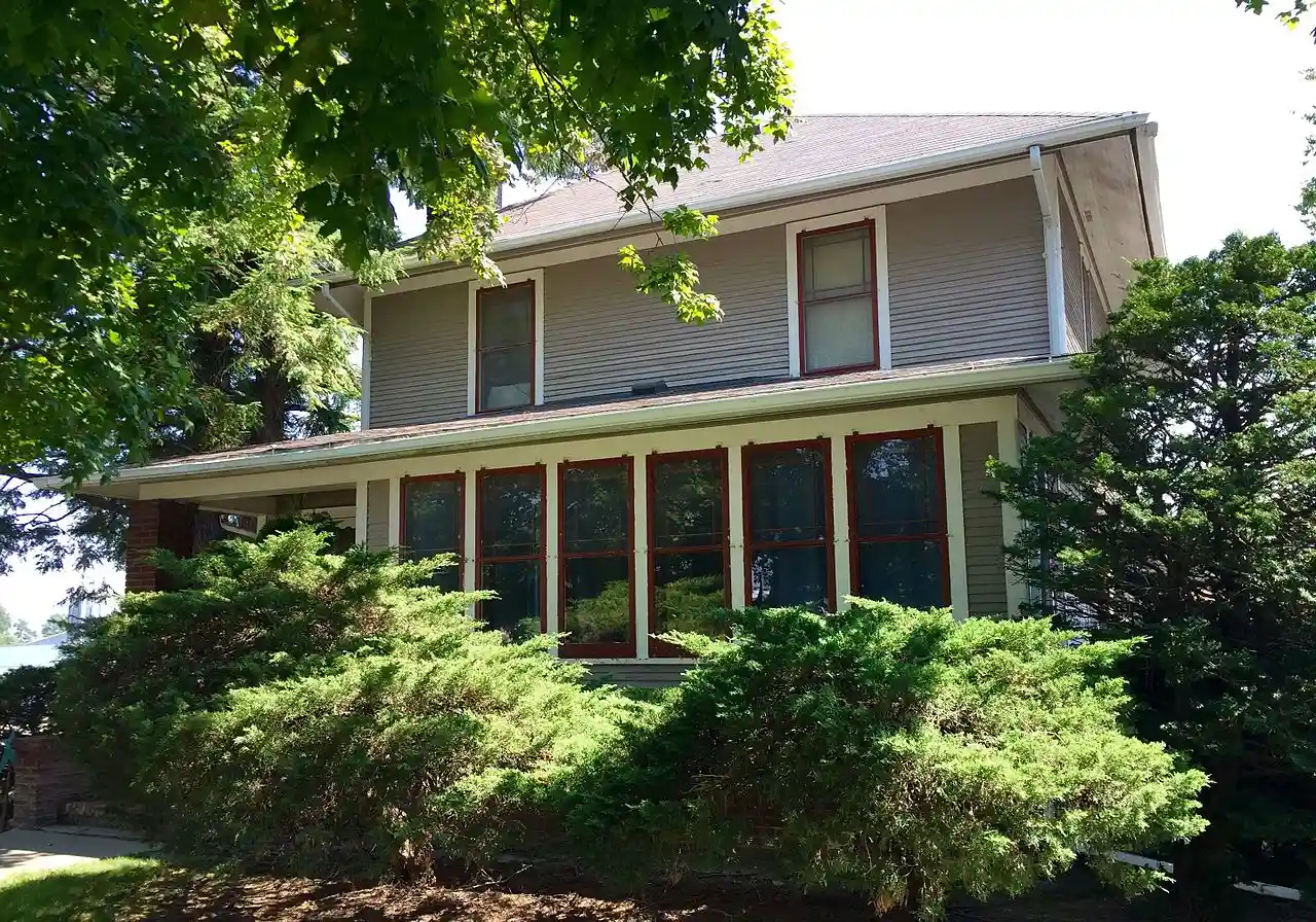 The Daniel O'Connell House is a historic house located at 115 North Union Street in Vermont, Illinois. Daniel O'Connell, a local banker and lumber salesman, had the house built in 1928. The house, which was built by contractor Fred Rankin, has an American Foursquare plan with American Craftsman elements. The Foursquare plan, which had become popular at the time for its simplicity, is reflected in the house's square shape and massiveness. The brick piers at the entrance and the horizontal emphasis of the exterior design both reflect the Craftsman style; the style also inspired several interior elements, such as seating and shelves, which are built into the home. Read more on Wikipedia