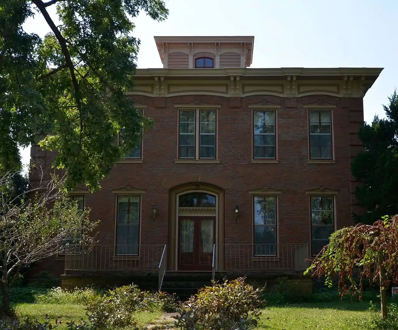 The Joab Mershon House is a historic house located at 507 West 5th Street in Vermont, Illinois. Joab Mershon, a local pork packer and banker, had the house built for his family in 1859. The house has an Italianate design with Greek Revival elements; at the time of its construction, the former style was emerging in popularity while the latter was declining, and the house represents a transitional work between the two styles. The Italianate influence is seen most prominently in the hip roof, which features a bracketed cornice and a cupola with matching brackets. Key Greek Revival elements include the dentillation on the entrance and cupola and the ornamental cast iron lintels. The house's interior has a four-over-four plan, which features four rooms on each floor and a central hallway. Read more on Wikipedia