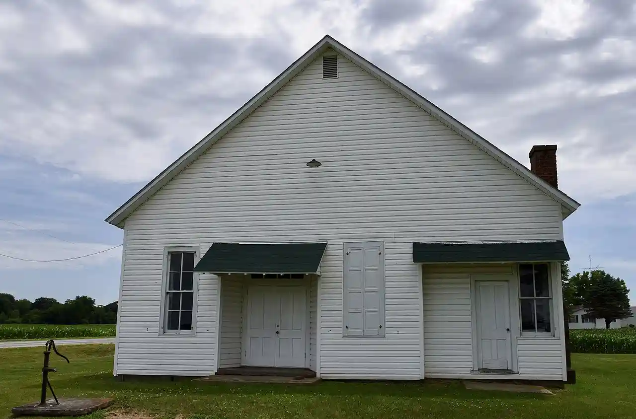 The South Fulton Churchhouse is a historic church located on Baden Road roughly two miles south of Astoria, Fulton County, Illinois. The church was built in 1879 for the western body of Astoria's German Brethren congregation. The church had a frame vernacular design typical of rural Protestant churches built in the late 1800s; its cottage plan design, distinguished by its lack of a tower or ornamentation, was common among early German Brethren churches. Its congregation followed a particularly traditional branch of the German Brethren, and the services held there consisted of Scripture readings, commentary from a preacher, and prayer; the church resisted what it saw as modern developments such as church music and professional ministers. The church was also designed to host the communal love feast, a religious meal which formed an important part of the German Brethren faith; its basement includes a kitchen with a stone hearth. Read more on Wikipedia