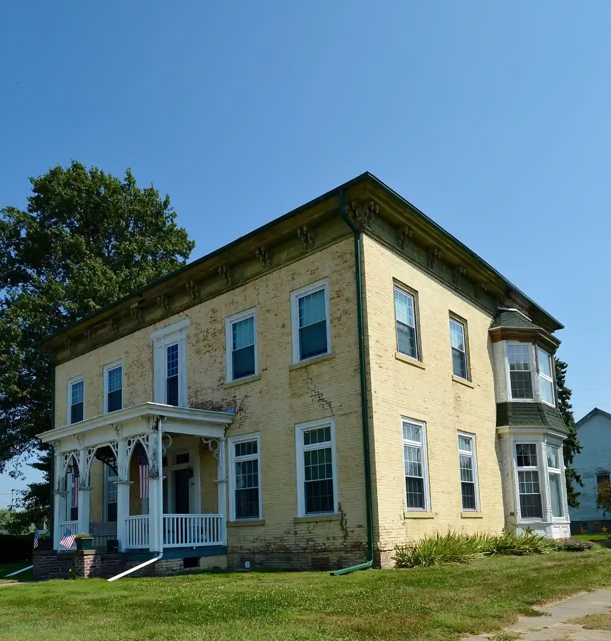 The Stapleford–Hoover–Whitney House is a historic house located at 401 North Main Street in Vermont, Illinois. Built circa 1855, the house was twice remodeled and incorporates elements of three different architectural styles. The original house was built for businessman and speculator Edward Stapleford; it had an I-house plan with a Greek Revival design, which is still reflected in its entrance and windows. Stapleford hanged himself in 1857 after going into debt via a speculation gone wrong; his wife Sarah lived in the house until 1871, when it was purchased by Dr. A. L. Hoover. Hoover, who ran a medical practice in the village, added the house's Italianate features, which included a hip roof with a bracketed cornice and two ornate porches. Merchant George F. Whitney bought the house in the 1880s; his wife and son added the Queen Anne style bay window in 1892. Read more on Wikipedia