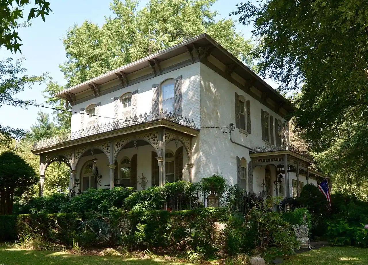 The William Franklin and Rebecca Durell House is a historic house located at 408 West 5th Street in Vermont, Illinois. Local businessman William Franklin Durell and his wife Rebecca had the house built in 1872; at the time, West 5th Street was a desirable neighborhood for prominent Vermont residents known as "The Lane". The couple's house is designed in the Italianate style. Decorative porches project from the house at the front entrance and on the east side, and the house's windows are tall and narrow with segmental arched tops. The house's low hip roof features a cornice with paired brackets. A Victorian-inspired carriage house with a cross gable plan and a cupola is also part of the property. Read more on Wikipedia