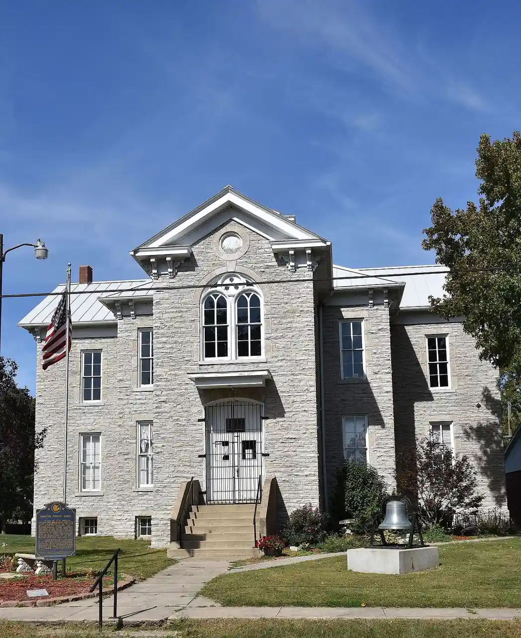 The Hamilton Primary School is a historic school building located on 107 E. Main Street in Otterville, Illinois. The two-story Italianate building was constructed in 1873 using limestone from the original school building, which was built in 1835. The original school was the first free and integrated school in the United States. The building was added to the National Register of Historic Places on August 6, 1998. Read more on Wikipedia