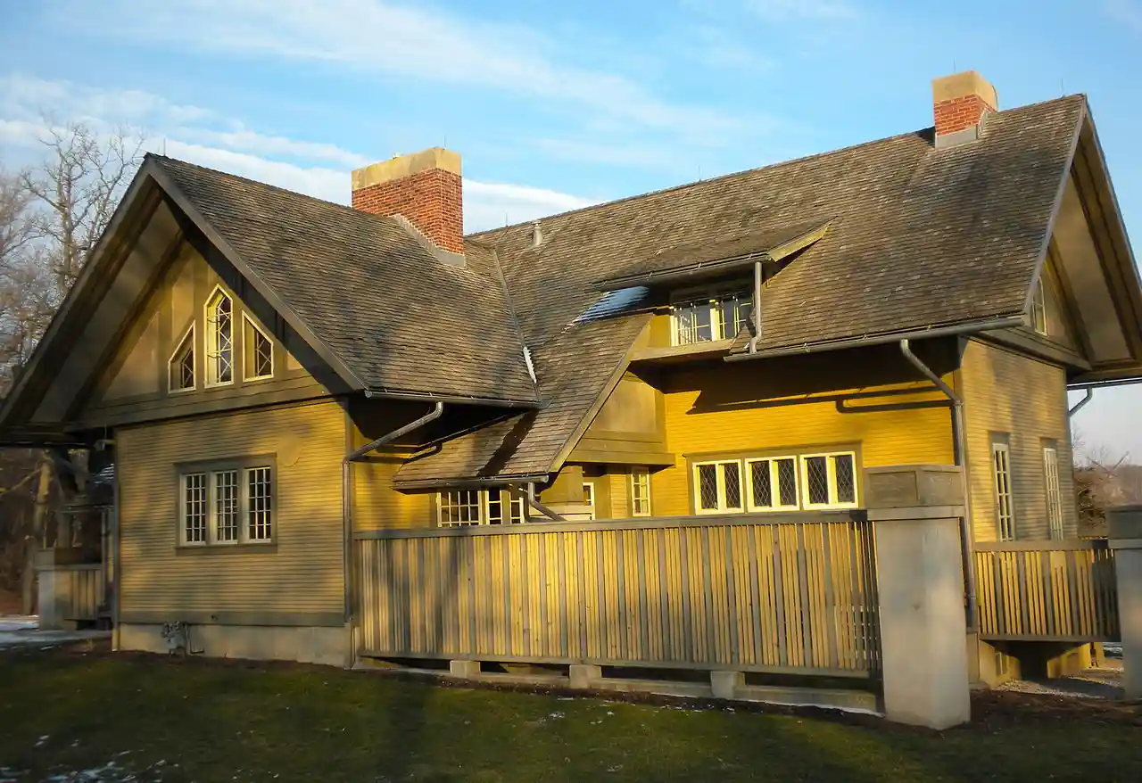 Fabyan Villa was the home of George and Nelle Fabyan from c. 1908 to 1939. The house is notable because of its remodelling in 1907 by Frank Lloyd Wright. It was the centerpiece of the Fabyans country estate, which they named Riverbank. The Kane County Forest Preserve District of Illinois purchased the majority of the Fabyan estate in 1939, and operated the Fabyans' home as a museum off and on beginning in 1940. In 1995 Preservation Partners of the Fox Valley was enlisted to operate the site and developed the Fabyan Villa Museum into a Fabyan historic home museum, where photographs, the Fabyans' personal artifact collections, and a limited number of original furnishings, as well as the Riverbank story are shared with the public. Read more on Wikipedia