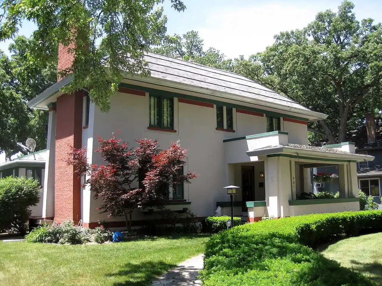 The Charles E. Swannell House is a Prairie School house in Kankakee, Illinois, United States. Designed by Tallmadge & Watson in the Prairie School style, it originally belonged to a local merchant. Read more on Wikipedia