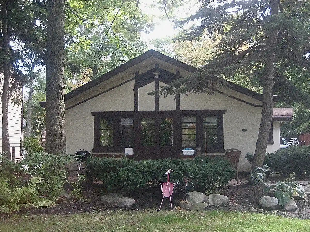 The Mrs. Frank Geyso Houses are two neighboring houses at 450 and 456 Woodland Road in Highland Park, Illinois. The earlier house at 450 Woodland was built in 1923–25, while the later house was built in 1930. John S. Van Bergen, a prominent Chicago architect who designed several other homes in Highland Park, designed both houses in the Prairie School style. The house at 450 Woodland is a cottage-style building with a stucco exterior and wood detail work. The house at 456 Woodland is a brick building with an entrance pavilion, a balcony, and overhanging eaves. Read more on Wikipedia