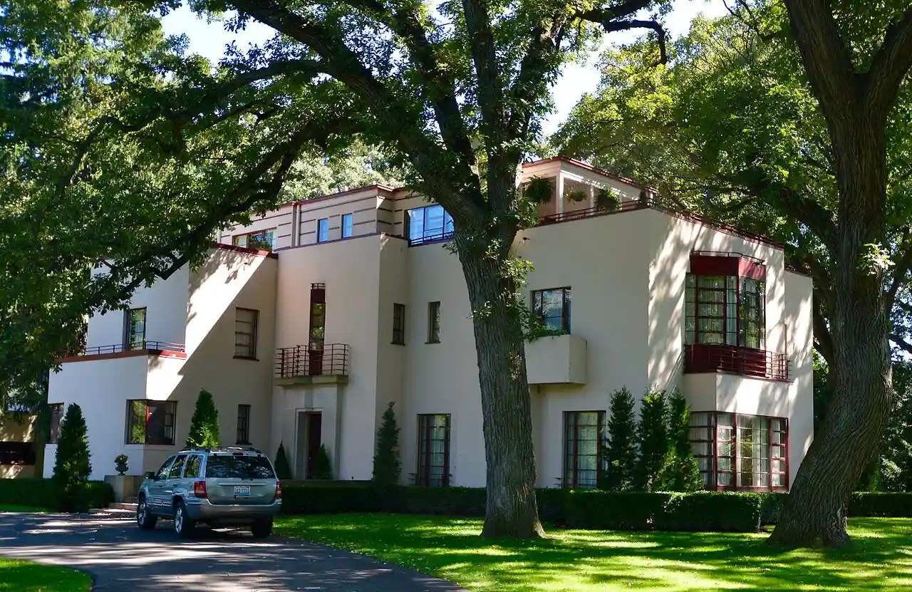 The Robert Hosmer Morse House is a historic house at 1301 Knollwood Circle in Lake Forest, Illinois. Built in 1932, the house served as a summer home for businessman Robert Hosmer Morse and his family. The architectural firm of Zimmerman, Saxe & Zimmerman designed the house, which combined elements of the Moderne and Art Deco styles. As the wealthy residents of Lake Forest typically used traditional designs for their homes, the modern architectural styles were an unusual choice. The house's design features a stucco exterior, a horizontal emphasis throughout, casement windows, decorative limestone around the front entrance, and a recessed third floor. Read more on Wikipedia
