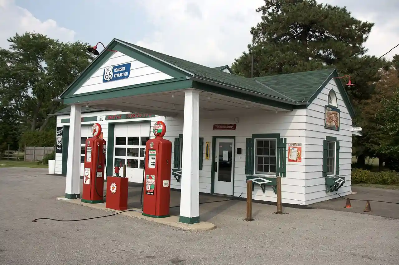 Ambler's Texaco Gas Station, also known as Becker's Marathon Gas Station, is a historic filling station located at the intersection of Old U.S. Route 66 and Illinois Route 17 in the village of Dwight, Illinois, United States. The station has been identified as the longest operating gas station along Route 66; it dispensed fuel for 66 continuous years until 1999. The station is a good example of a domestic style gas station and derives its most common names from ownership stints by two different men. North of the station is an extant outbuilding that once operated as a commercial icehouse. Ambler's was the subject of major restoration work from 2005 to 2007, and reopened as a Route 66 visitor's center in May 2007. It was added to the U.S. National Register of Historic Places in 2001. Read more on Wikipedia