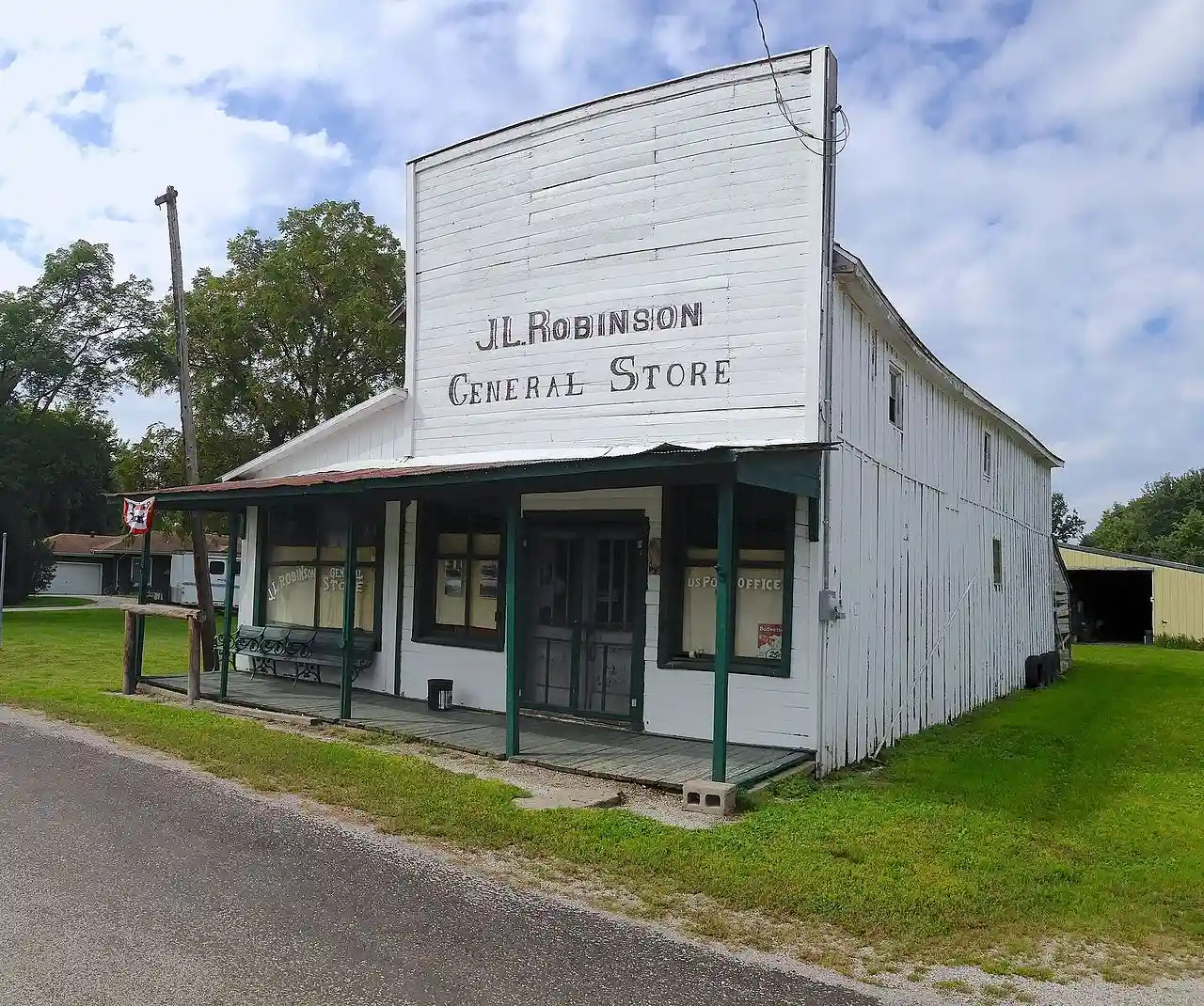 The J. L. Robinson General Store is a historic general store located on Hagaman Road in Hagaman, Macoupin County, Illinois. Railroad worker Charles Crossland Robinson opened the store in 1881; his son James Leo Robinson took over the store upon his father's death, giving it its current name. The store was the main seller of household and farming supplies in Western Mound Township and the Hagaman and Chesterfield areas. In addition, the building served as the township's post office, a railway express office for Macoupin County's two railroads, and the local Democratic Party headquarters. The store was also the first building in the area to receive electricity and telephone service. It is now the only surviving building in the area built before 1900. Read more on Wikipedia