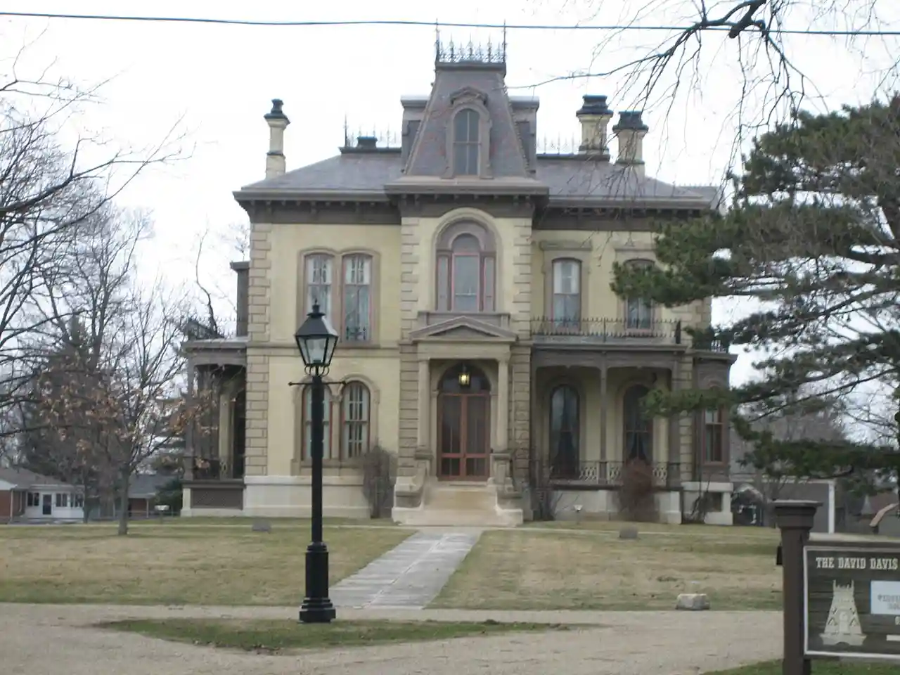 The David Davis Mansion, also known as Clover Lawn, is a Gilded Age home in Bloomington, Illinois that was the residence of David Davis, Supreme Court justice (1862–1877) and Senator from Illinois. The mansion has been a state museum since 1960. It was added to the National Register of Historic Places in 1972 and was designated a National Historic Landmark in 1975. Read more on Wikipedia