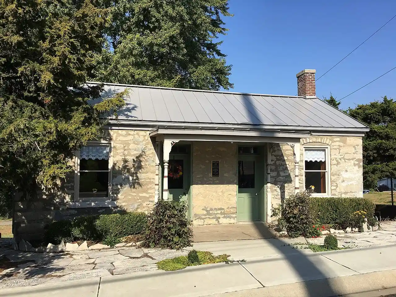 The Frederick Weistar House is a historic stone cottage house at 515 Chestnut Street in Chester, Illinois. The house was built circa 1859 for Frederick Weistar, a Swiss immigrant. The house has a vernacular design with a two-door facade pattern, in which two front doors provided access to each of the house's two first-floor rooms. The house itself was two rooms wide and one room deep which provided access to most of the house. While the two-door facade is common in vernacular architecture, the purpose of the two doors is historically disputed; as the form is especially prevalent in German vernacular architecture, it may have been inspired by traditional German architecture, though it may have also functioned as a way to separate public and private spaces in a home. This particular design of house was very popular for single-family residences.https://lewisandclark.travel/nomination/frederick-weistar-house/ The one-story limestone house also features a wooden front porch with carved columns and brackets, its only significant decorative element. Read more on Wikipedia