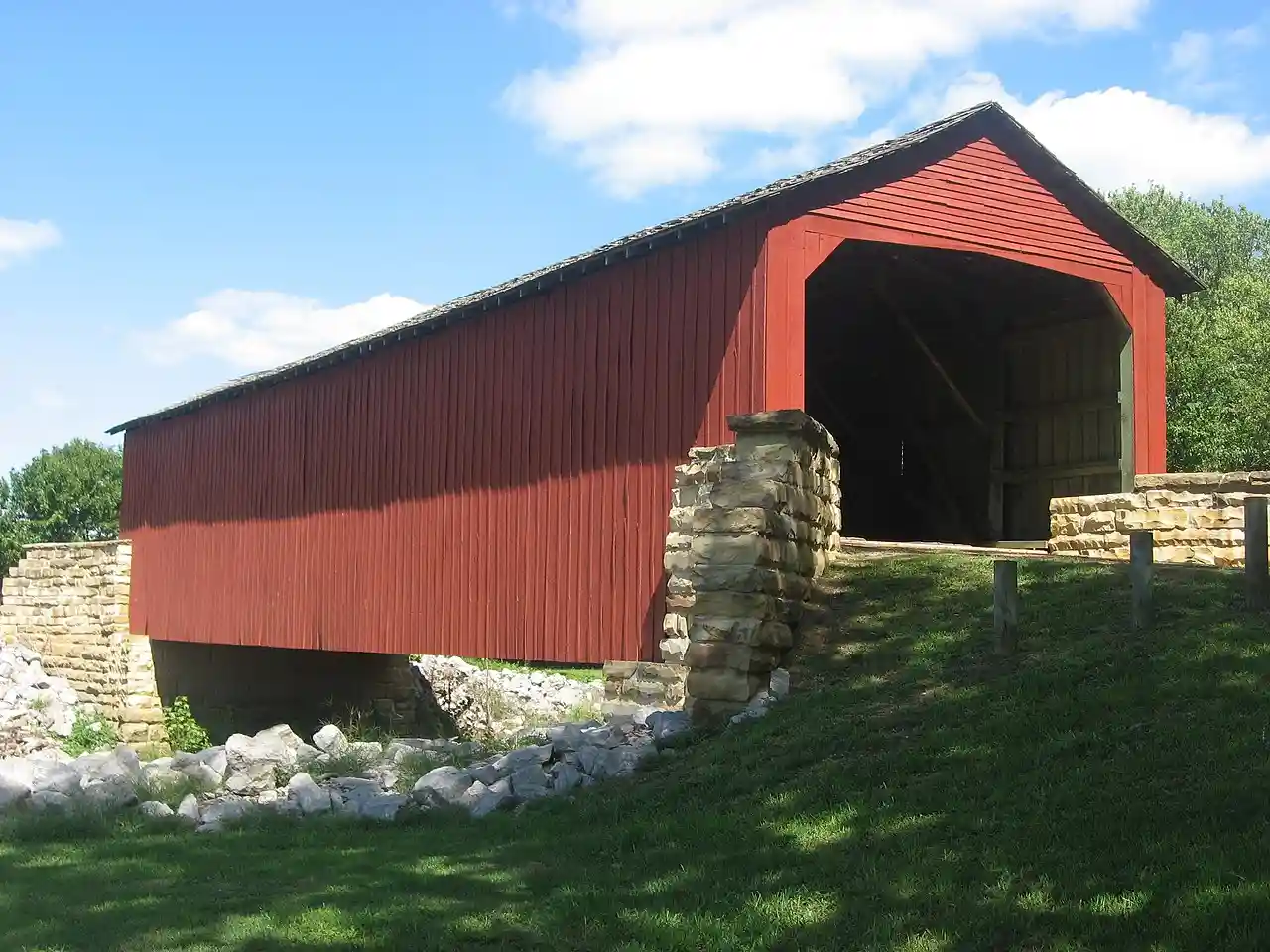 Mary's River Covered Bridge is a covered bridge which crosses Marys River northeast of Chester, Illinois. The Burr truss bridge is long and wide. The bridge was built in 1854 as part of a plank toll road connecting Chester to Bremen; the bridge allowed agricultural products to be transported to Chester, a significant port on the Mississippi River. In the early 1870s, the toll road and the bridge were sold to Randolph County. The bridge served road traffic until 1930. Read more on Wikipedia