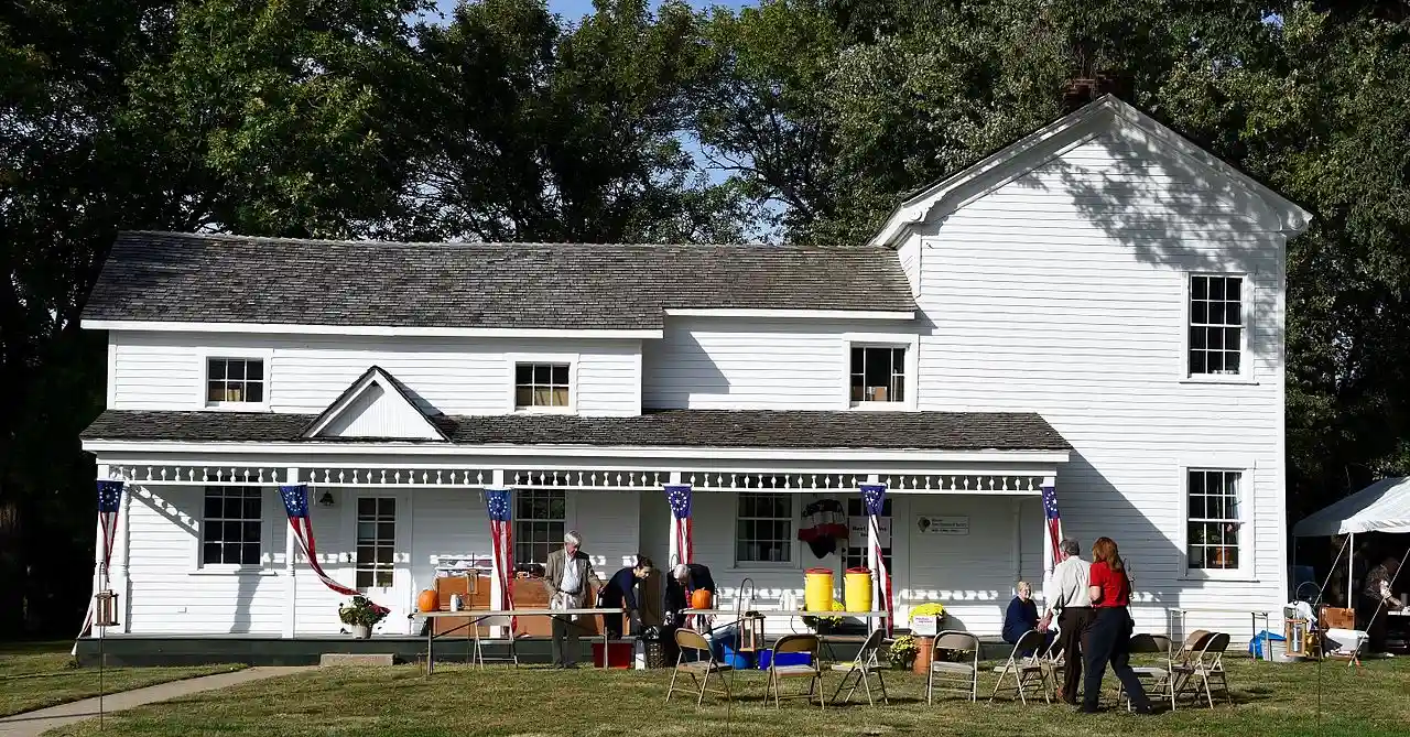 The Strawbridge-Shepherd House is a historic house located at 5255 Shepherd Road in Springfield, Illinois. Saddle and harness maker Thomas Strawbridge built the house for himself circa 1845. The original house was a two-story Greek Revival structure, a popular design choice at the time; it is one of the best-preserved Greek Revival houses in the Springfield area. Key Greek Revival elements of the house include its wide cornice trim resembling an entablature and the pilasters, sidelights, and transom around the front door. An addition from circa 1865 gave the house an "L" shape and added a new kitchen. Civil War veteran Charles M. Shepherd purchased the house in 1883. Shepard made several additions and modifications to the house; many of these added Queen Anne elements, such as the two porches with decorative spindlework. Read more on Wikipedia