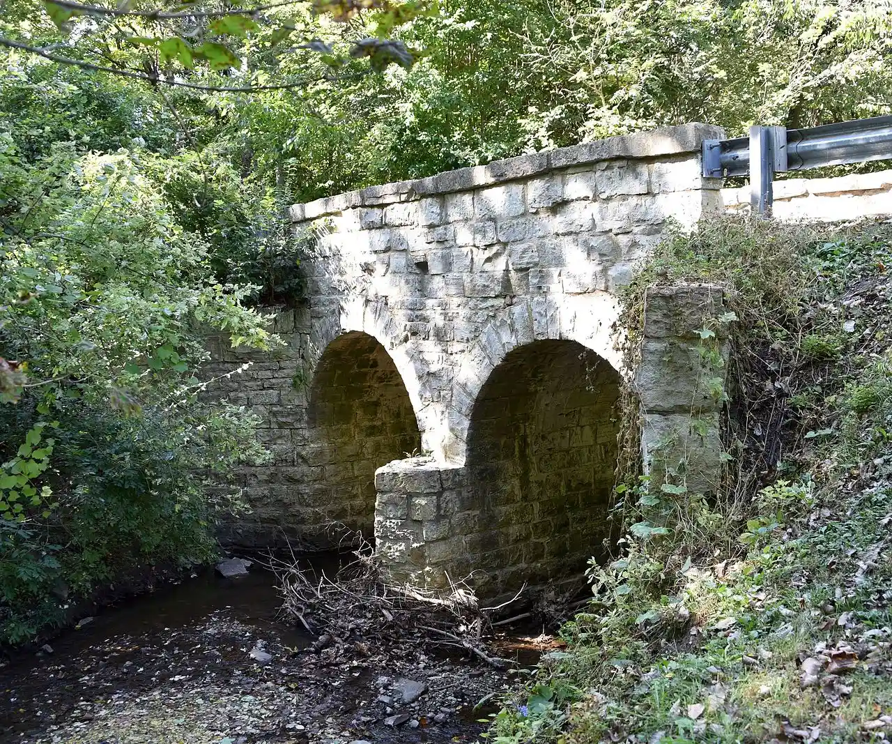 Cemetery Road Bridge is a historic bridge located in Glendale Cemetery in Washington, Illinois. The double stone arch bridge is long and carries Cemetery Road across the south branch of Farm Creek. Engineer Frederick Rickman designed the bridge for the City of Washington in 1893, and it was built the following year by stonemason Jacob Habluetzel. Habluetzel built the bridge from square cut blocks of ashlar stone. The bridge is the best-preserved bridge of its type in Tazewell County and is the only stone arch bridge in the area that is still supported solely by its arches. Read more on Wikipedia