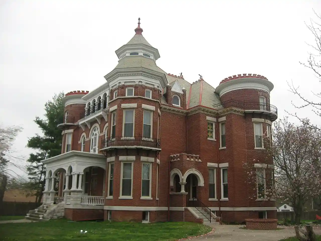 The James Robert Williams House is a historic house located at 310 E. Main St. in Carmi, Illinois. The house was built in 1896 for James Robert Williams, a U.S. Representative and political ally of William Jennings Bryan. Prominent residential architect George Franklin Barber designed the red brick house in a blend of the Romanesque Revival and Queen Anne styles. The house has three corner towers, two with crenellated tops and one with a double bell roof; the towers cause the building to resemble a castle. The house's front entrance is surrounded by an arched porch with a balcony on its roof. A loggia is located above the entrance on the house's third level. Read more on Wikipedia