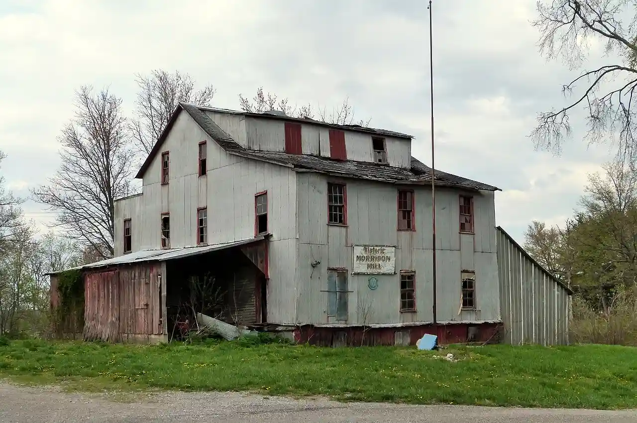 The Old Morrison Mill is a historic gristmill in Burnt Prairie, Illinois. The mill was originally constructed in 1859 in Enfield and was moved to Burnt Prairie in the late nineteenth century, replacing another mill built in 1820. The mill served as the farming community's local grain processing facility, converting wheat to flour and corn to meal. While the mill was originally horse-powered, a wood-fueled boiler was installed in 1897; the boiler's power source later changed to coal, a diesel engine, and ultimately electricity. Parkin and Martin owned the mill after its relocation to Burnt Prairie until brothers R.S. and Cal Morrison purchased it in 1897. R.S. Morrison died in 1931; his sons continued to operate the mill with Cal until 1963. The mill currently sits vacant and houses a variety of well-preserved milling tools and machinery. Read more on Wikipedia