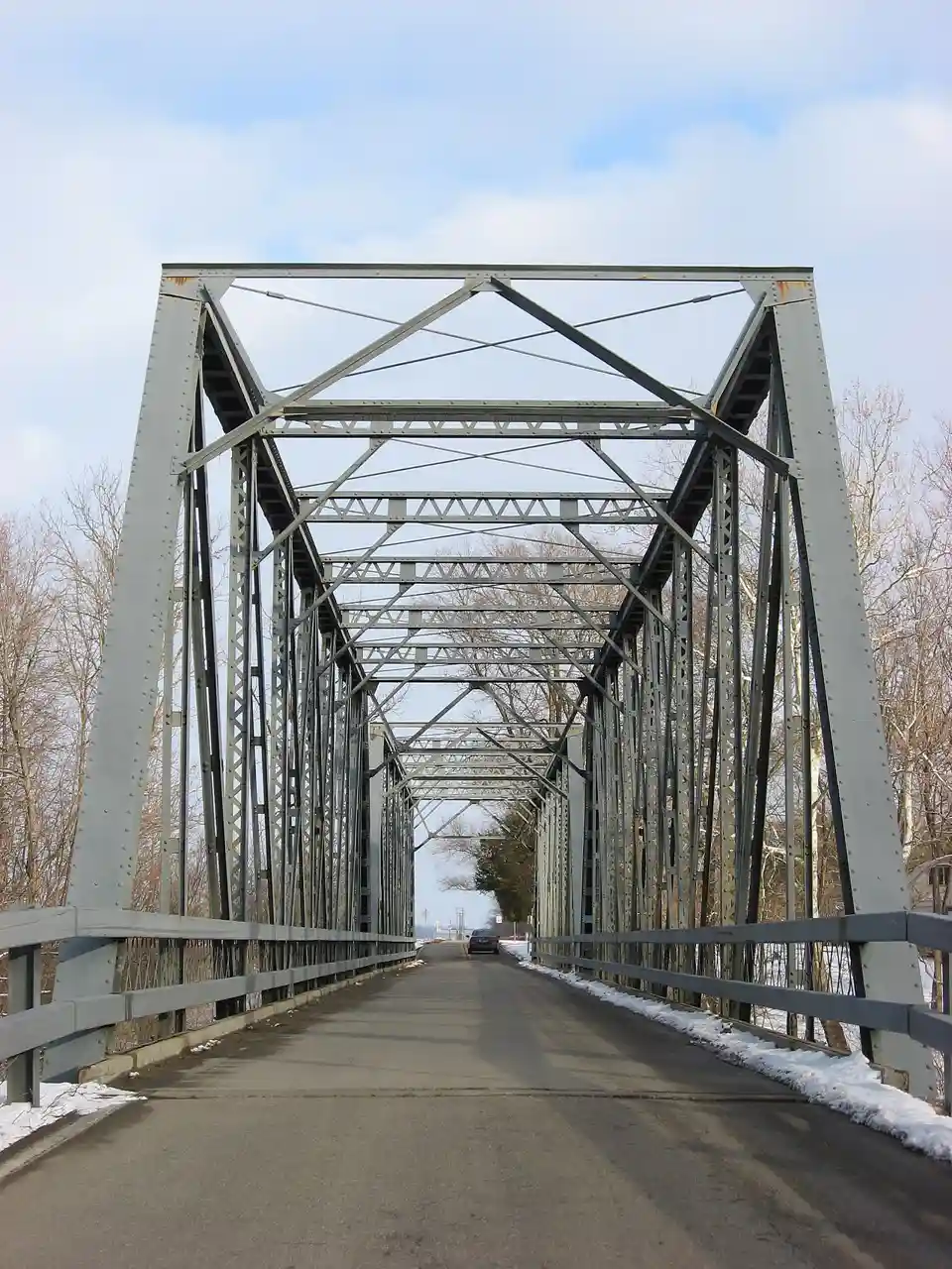 New Hope Bridge, also known as Bartholomew County Bridge No. 133, is a historic Pratt through truss bridge spanning the Flatrock River at Columbus Township, Bartholomew County, Indiana. It was designed by the Caldwell & Drake ironworks and built in 1913. It consists of two spans, with each measuring 128 feet long. It rests on concrete abutments and a concrete pier. Note: This includes and Accompanying photographs. Read more on Wikipedia