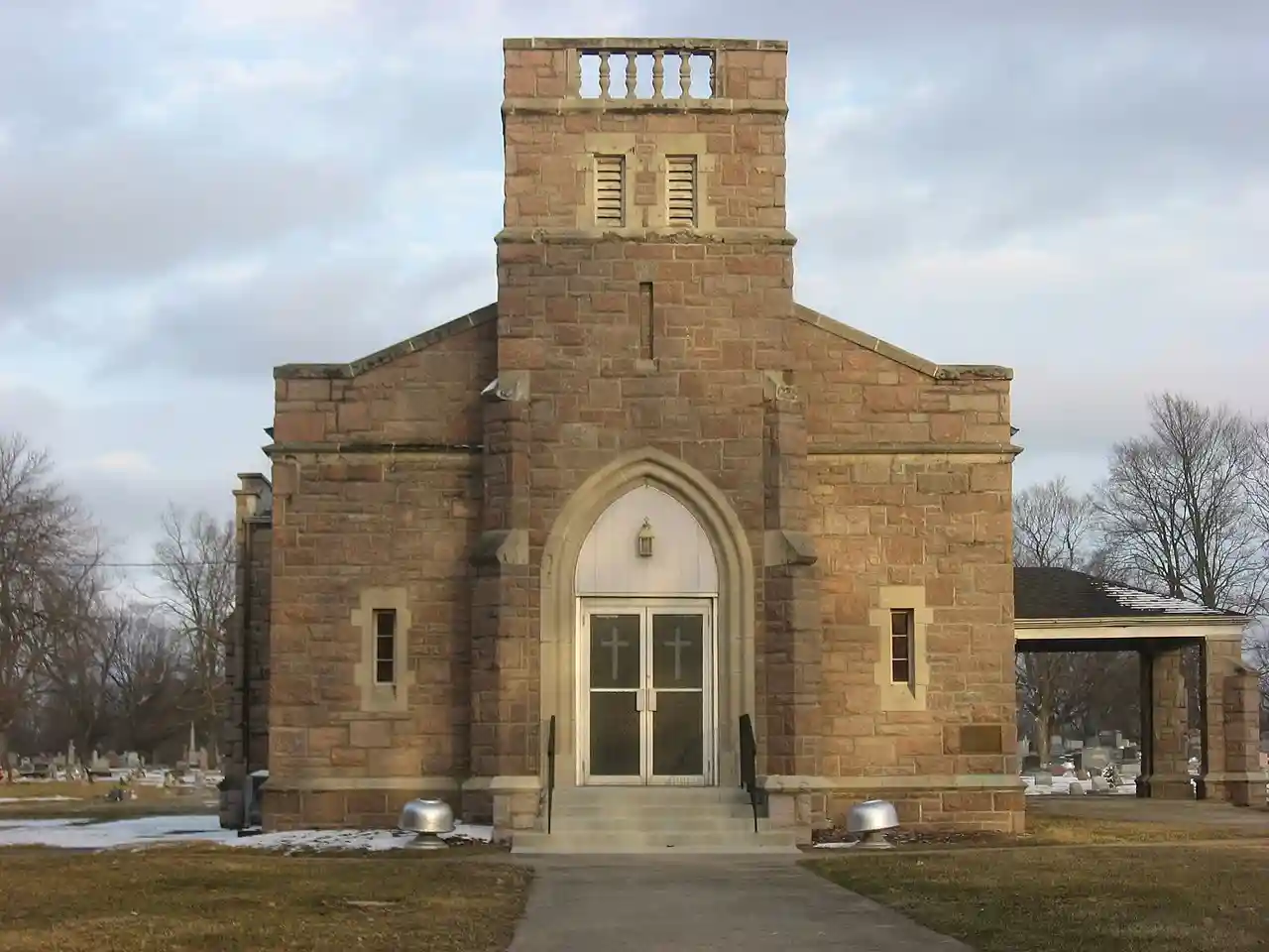 Oak Hill Cemetery is a historic cemetery located at Lebanon, Boone County, Indiana. The cemetery was established in 1872 as Rodefer Cemetery, and includes many noteworthy examples of Victorian funerary art. Other notable features are the Late Gothic style William L. Powell Chapel (1930), office building (1955), English barn, the Romanesque Revival style main gate, north gate, the original mausoleum, Metzger Mausoleum, Heath Mausoleum, and Stokes Mausoleum. Notable burials include Indiana governor and U.S. Senator Samuel M. Ralston (1857–1925). Note: This includes and Accompanying photographs. Read more on Wikipedia