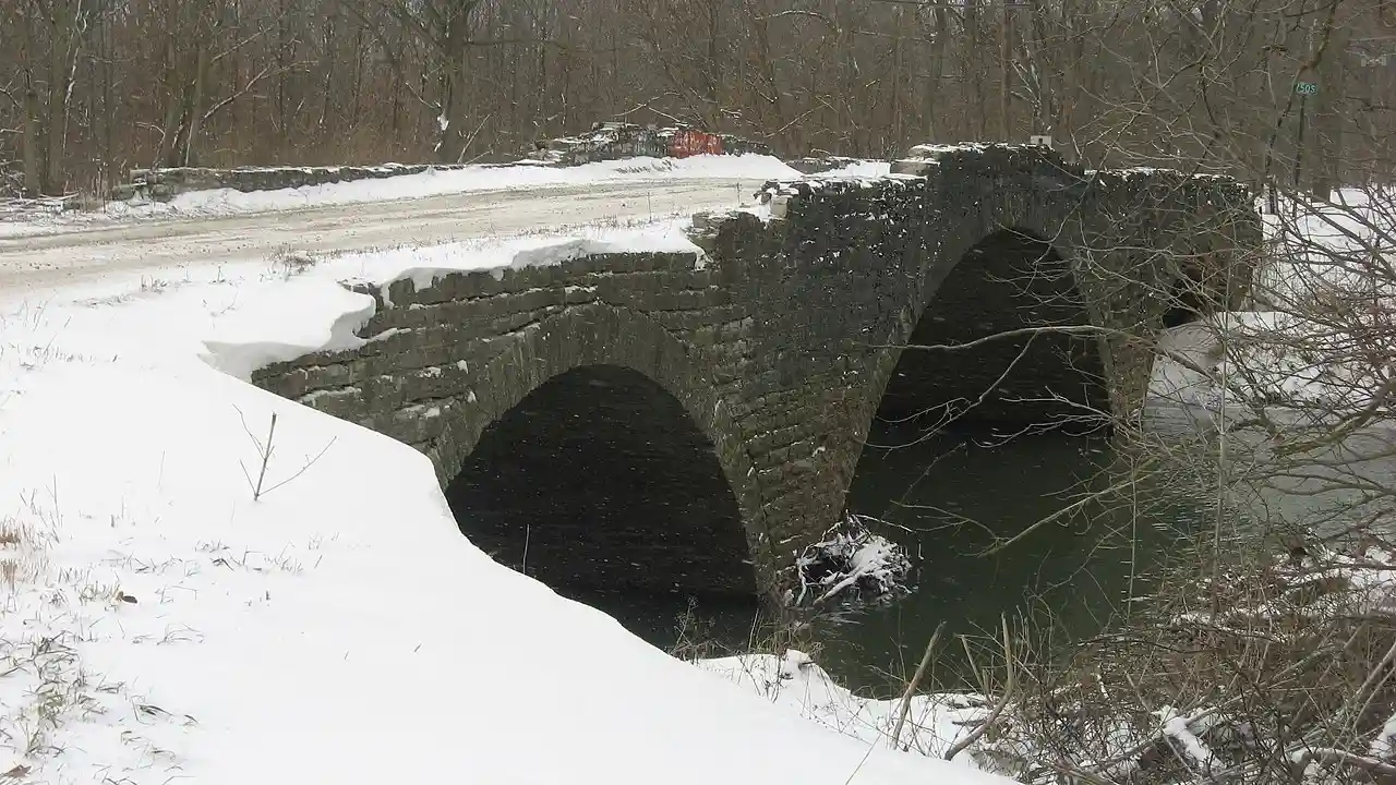Scotland Bridge, also known as Boone County Bridge #41, is a historic segmental arch bridge located at Clinton Township, Boone County, Indiana. It was built 1901 and rebuilt in 1908, and is a 120-foot-long, three-span bridge built of Indiana limestone. Note: This includes and Accompanying photographs. Read more on Wikipedia