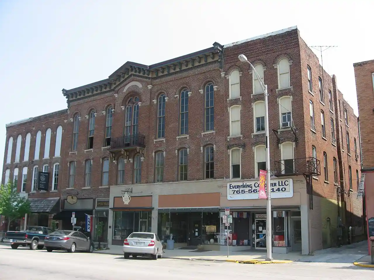 Delphi City Hall, also known as the Assian-Ruffing Building and Old City Hall-Opera House, is a historic city hall located at 105-109 Washington Street in Delphi, Indiana. It was built in 1865, and is a three-story, Italianate style red brick building. The third floor was remodeled for use as an opera house in 1881. The building was damaged by a fire in December 1914 and the third floor has remained vacant since. Note: This includes and Accompanying photographs. Read more on Wikipedia