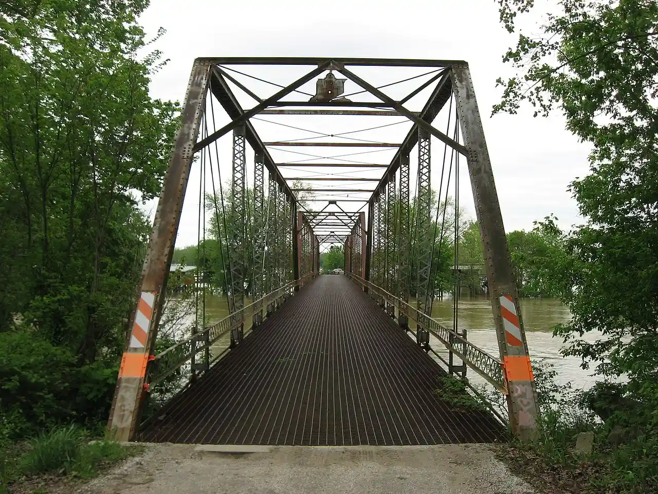 County Bridge No. 45 is a historic Pratt Through Truss bridge located in Washington Township, Daviess County, Indiana. It was built by the Indiana Bridge Company and erected in 1903. It carries County Road 150N over the White River and into Knox County, Indiana. The bridge consists of three 140 foot long spans on concrete abutments, with an overall length of 422 feet. Note: This includes and Accompanying photographs. Read more on Wikipedia