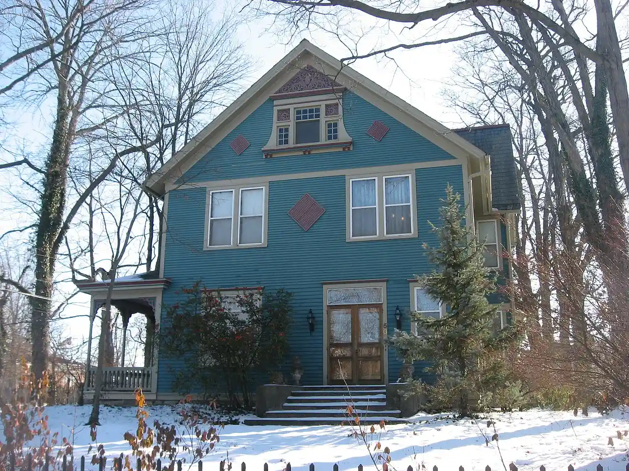 Mountz House is a historic home located at Garrett, DeKalb County, Indiana. It was built in 1893, and is a two-story, four bay by five bay, Queen Anne style frame dwelling. It has a cross gable roof and two-story gabled wing. It sits on a fieldstone foundation and has a pitched slate roof. It has narrow clapboard siding and decorative diamond-shaped checkerboard pattern panels. It features a front porch with turned posts and decorative brackets. Also on the property is a contributing barn. Note: This includes and Accompanying photographs. Read more on Wikipedia