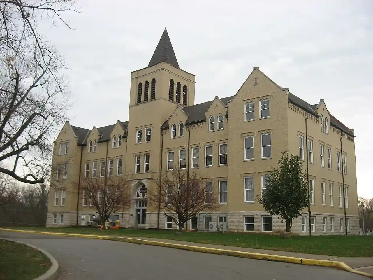 Carnegie Hall of Moores Hill College, also known as Moores Hill High School, is a historic educational building located at Moores Hill, Dearborn County, Indiana. It was built in 1907, and is a -story, "T"-plan, brick building with Collegiate Gothic and Jacobethan Revival style design elements. It sits on a raised limestone faced basement. The building consists of a central portion flanked by projecting wings bisected by a central bell tower with pyramidal roof. It features a steeply pitched gable roof, parapeted gables, terra cotta trim, and pointed arch openings. The building housed Moores Hill College until 1917, when it moved to Evansville to later become the University of Evansville. It was funded in part by Andrew Carnegie, who donated $18,750 to its construction. It later housed the local high school and elementary school until 1987. Note: This includes and Accompanying photographs. Read more on Wikipedia