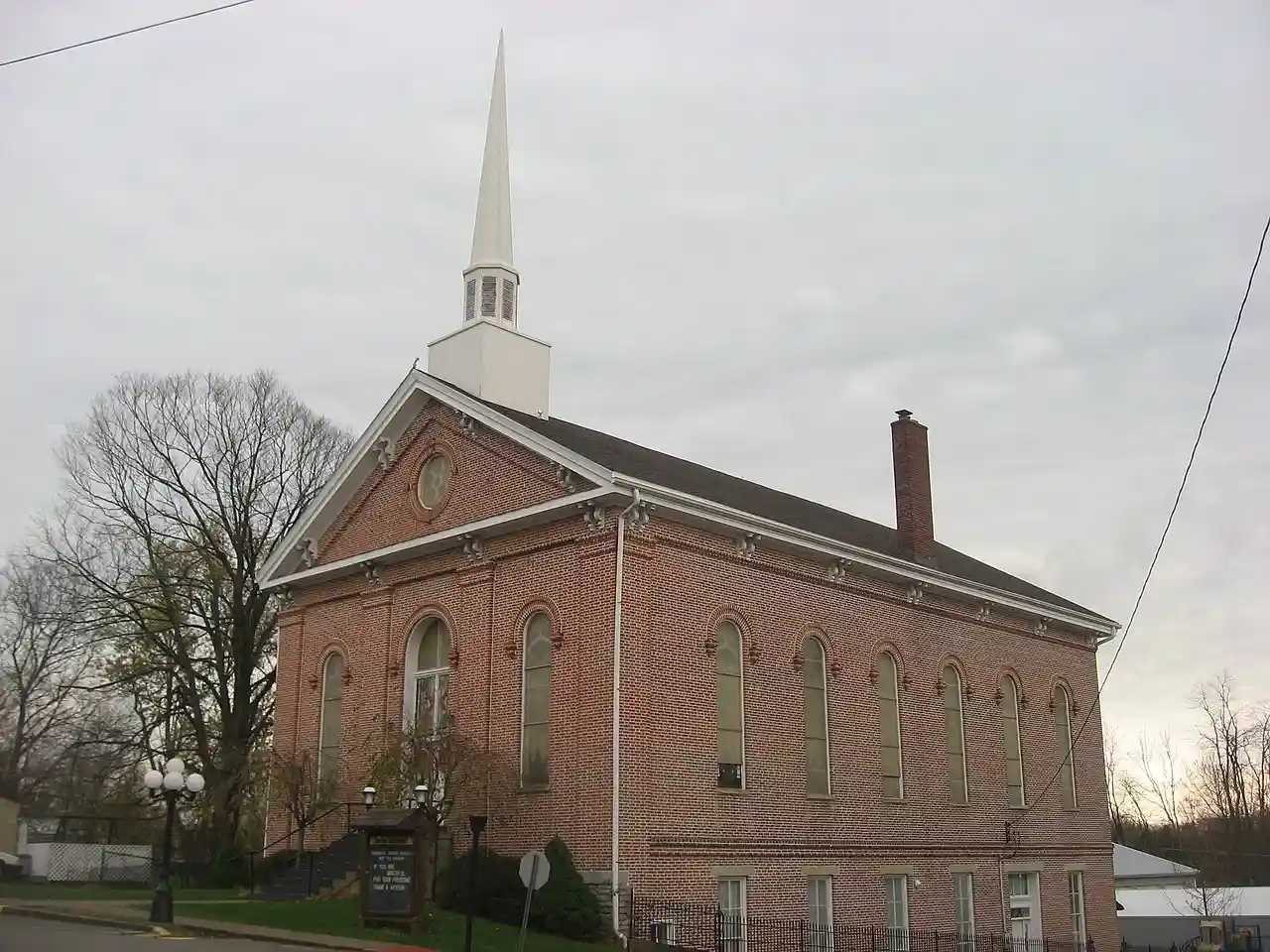 Moore's Hill United Methodist Church, also known as Methodist Episcopal Church, is a historic Methodist church located at 13476 Main Street in Moores Hill, Dearborn County, Indiana. It was built in 1871, and is a simple one-story, gable front, brick building with Greek Revival and Italianate style design elements. It rests on a limestone foundation and has four Doric order pilasters on the front facade. Note: This includes and Accompanying photographs. Read more on Wikipedia