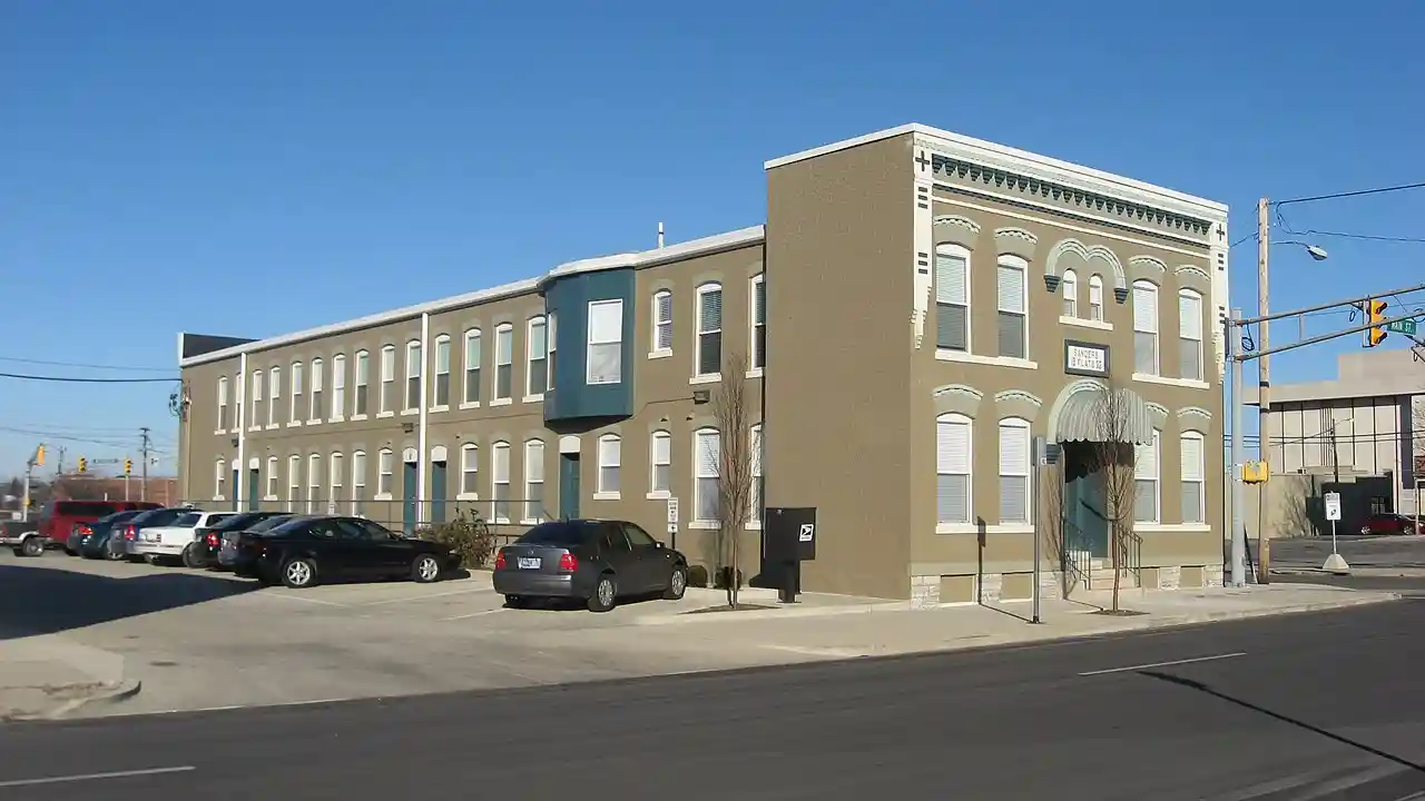 Judson Building is a historic apartment building located at Muncie, Delaware County, Indiana. It was built about 1900, and is a two-story, five bay by nine bay, Romanesque Revival style red brick building. It has a flat roof, segmental arch openings, and projecting angular bays. Note: This includes and Accompanying photographs. Read more on Wikipedia