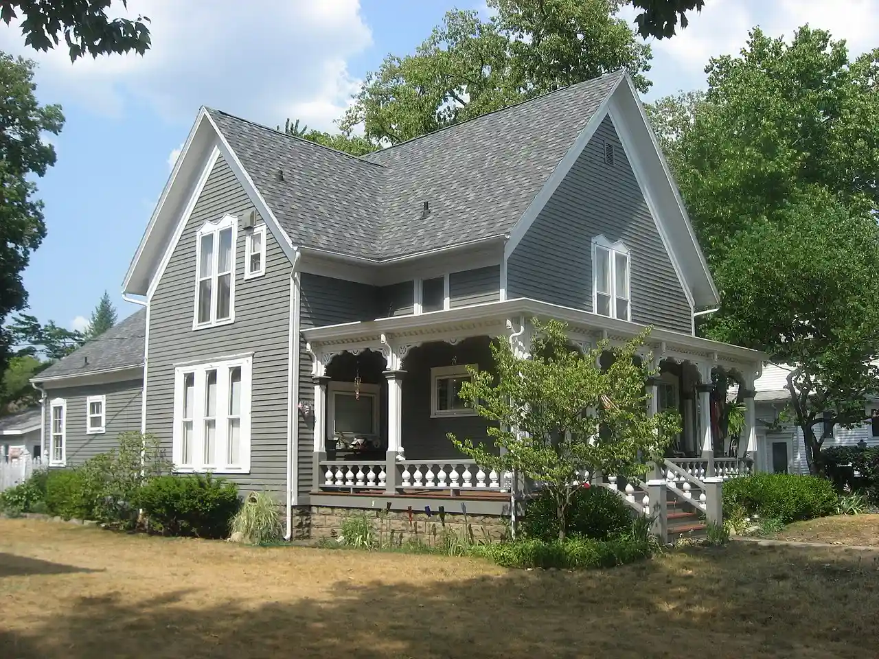Emmanuel C. Bickel House is a historic home located at Elkhart, Elkhart County, Indiana. It was built about 1870, and is a two-story, "T"-plan, Carpenter Gothic style balloon frame dwelling. It features a wraparound porch with a flat roof, decorative scrollwork, and eight bracketed square columns. Note: This includes and Accompanying photographs. Read more on Wikipedia