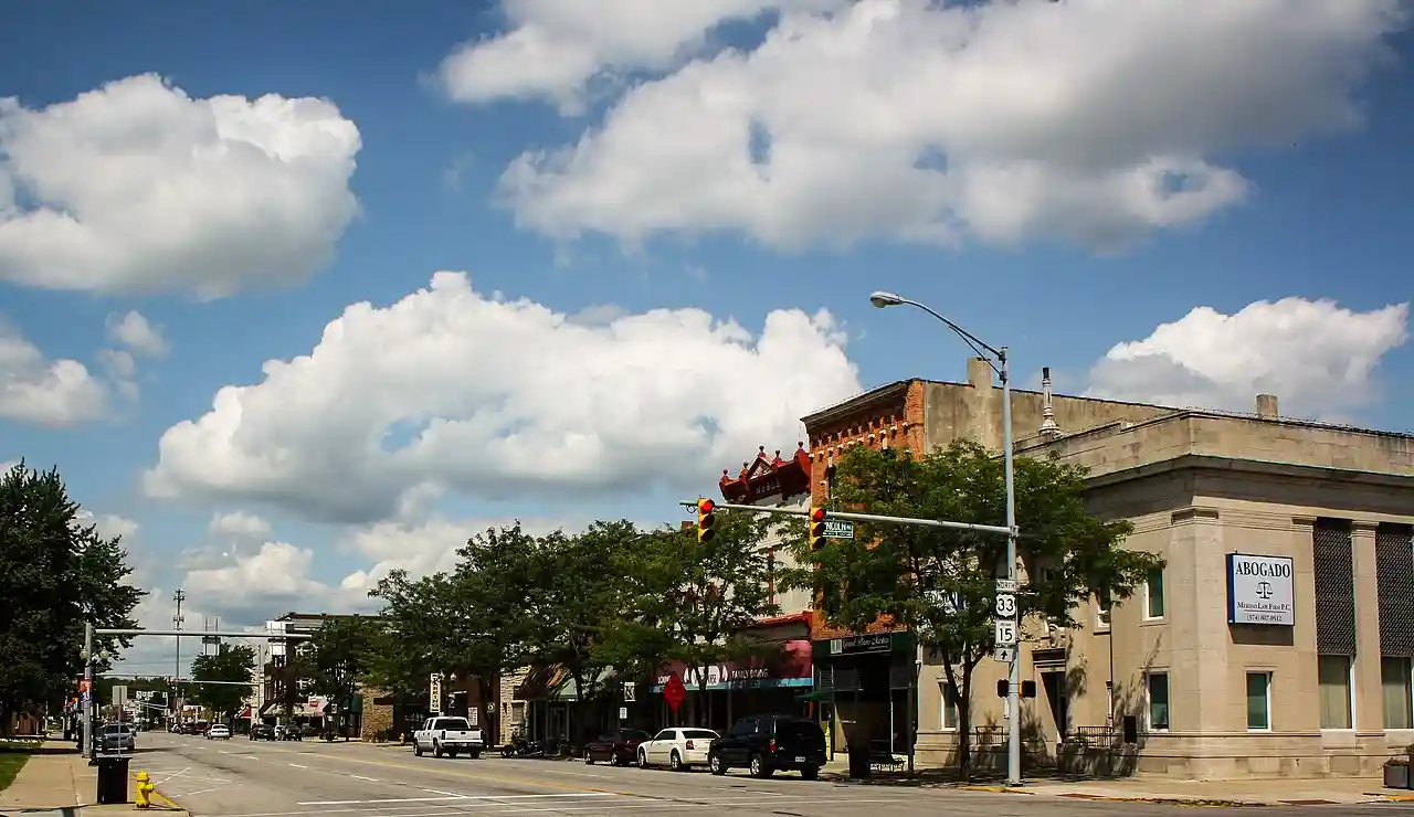 Goshen Historic District is a national historic district located at Goshen, Elkhart County, Indiana. The district encompasses 751 contributing buildings and 1 contributing site in the central business district and surrounding residential sections of Goshen. The town was developed between about 1840 and 1930, and includes notable examples of Italianate and Queen Anne style architecture. Located with in the district are the separately listed Elkhart County Courthouse and Goshen Carnegie Public Library. Other notable buildings include the Kindy Block (1881), Central Block (1882), Spohn Building (1909), Harper Block (1888), Noble Building (c. 1885), Jefferson Theater (1907), General Baptist Church (1859), First Methodist Church (1874), and St. James Episcopal Church (1862). Note: This includes and Accompanying photographs and map. Read more on Wikipedia