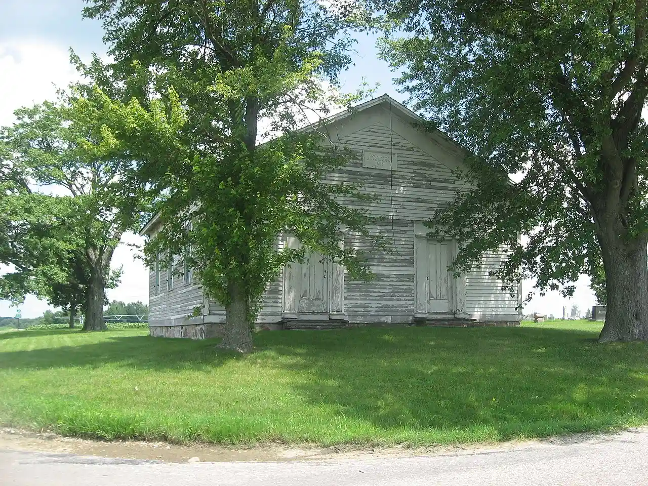 St. John's Lutheran Church is a historic former Lutheran church located in Harrison Township, Elkhart County, Indiana. It was built in 1852–1853 by Albert Galentine on land owned by John Rarick, Sr., who deeded the land to the "Evangelical Lutheran Church" in 1855. Services at the church ended in 1894 after John Rarick, Jr., the congregation's largest financial supporter, moved to the Elkhart area. Read more on Wikipedia