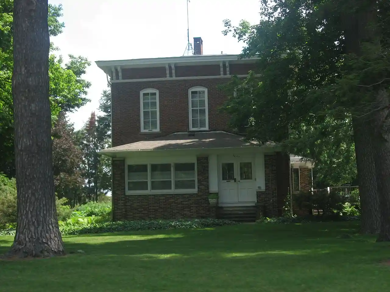 William N. Violett House, also known as the Jack Dueck Residence, is a historic home located at Goshen, Elkhart County, Indiana. It was built about 1854, and is a two-story, T-shaped, Italianate style red brick dwelling. It features cornice brackets, heavy frieze molding, and arched openings. Note: This includes and Accompanying photographs. Read more on Wikipedia