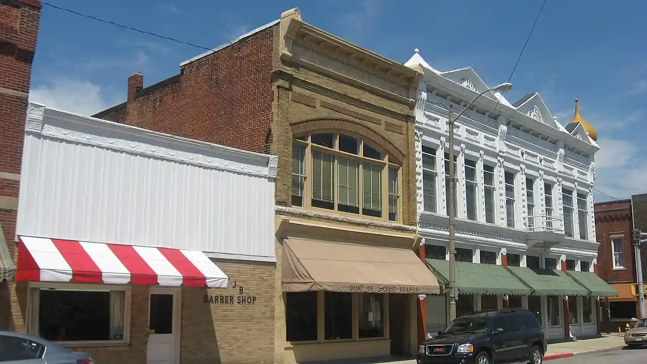 Fairmount Commercial Historic District is a national historic district located at Fairmount, Grant County, Indiana. It encompasses 31 contributing buildings in the central business district of Fairmount. It developed between about 1884 and 1945, and includes notable examples of Italianate and Romanesque Revival style architecture. Notable buildings include the Scott Opera House (1884), M.A. Hiatt Building (1900), Bogue Block (1889), J.W. Dale Block (1889), Fairmount Block (1901), Fairmount Public Library (1891-1893), Odd Fellow Block (1902), and Masonic Temple (1904). Note: This includes , site map, and Accompanying photographs. Read more on Wikipedia