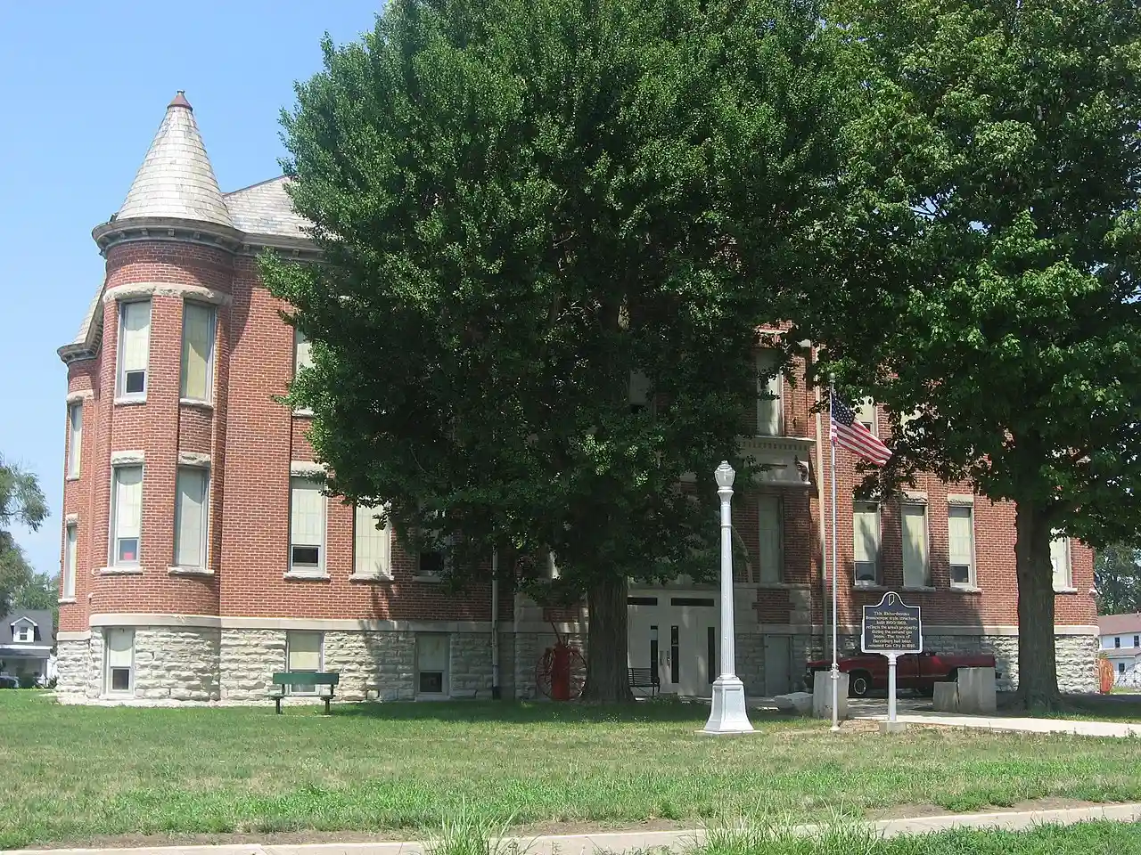 West Ward School, also known as the West Building Mississinewa Community Schools, is a historic school building located at Gas City, Grant County, Indiana. It was built between 1900 and 1902, and is a -story, rectangular, Richardsonian Romanesque style brick and stone building. It features a symmetrical main facade with round towers at each corner topped by conical roofs. Note: This includes and Accompanying photographs. The building houses a museum and community center. Read more on Wikipedia