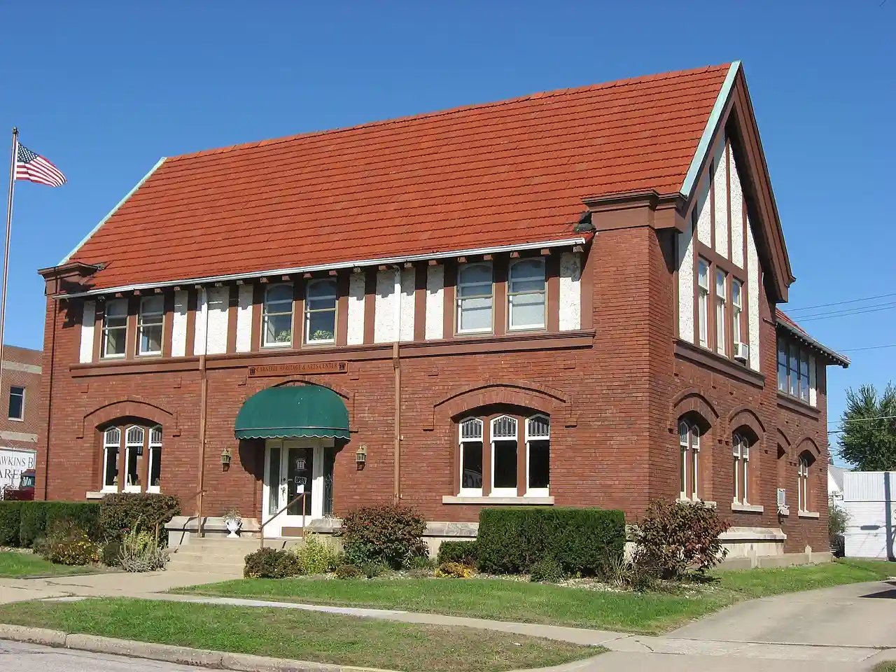Linton Public Library, also known as the Margaret Cooper Library, is a historic library building located at Linton, Greene County, Indiana. It was designed by noted Chicago architecture firm Patton & Miller and built in 1908. It is a -story, "T"-plan, Tudor Revival style building with Arts and Crafts style design elements. It has a steeply pitched gable roof with French clay tile. The first story is of brick and upper story sheathed in stucco with half-timbering. Note: This includes and Accompanying photographs. Read more on Wikipedia