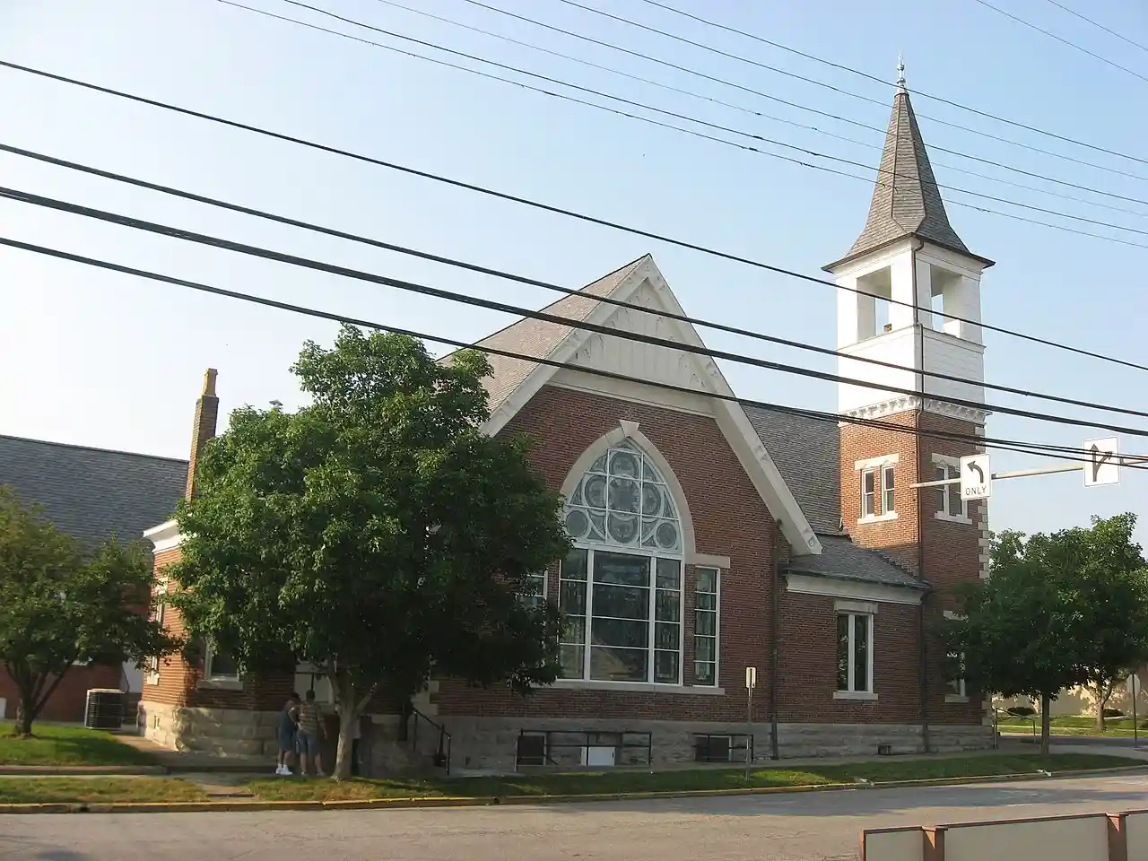 First Presbyterian Church is a historic Presbyterian church located at 301 N. Walnut Street in Seymour, Jackson County, Indiana. It was completed in 1884, and is a one-story, Late Gothic Revival style brick church with a cross-axial plan. It features a tall corner bell tower and large art glass windows measuring 18 feet wide by 22 feet high. Note: This includes and Accompanying photographs. Read more on Wikipedia