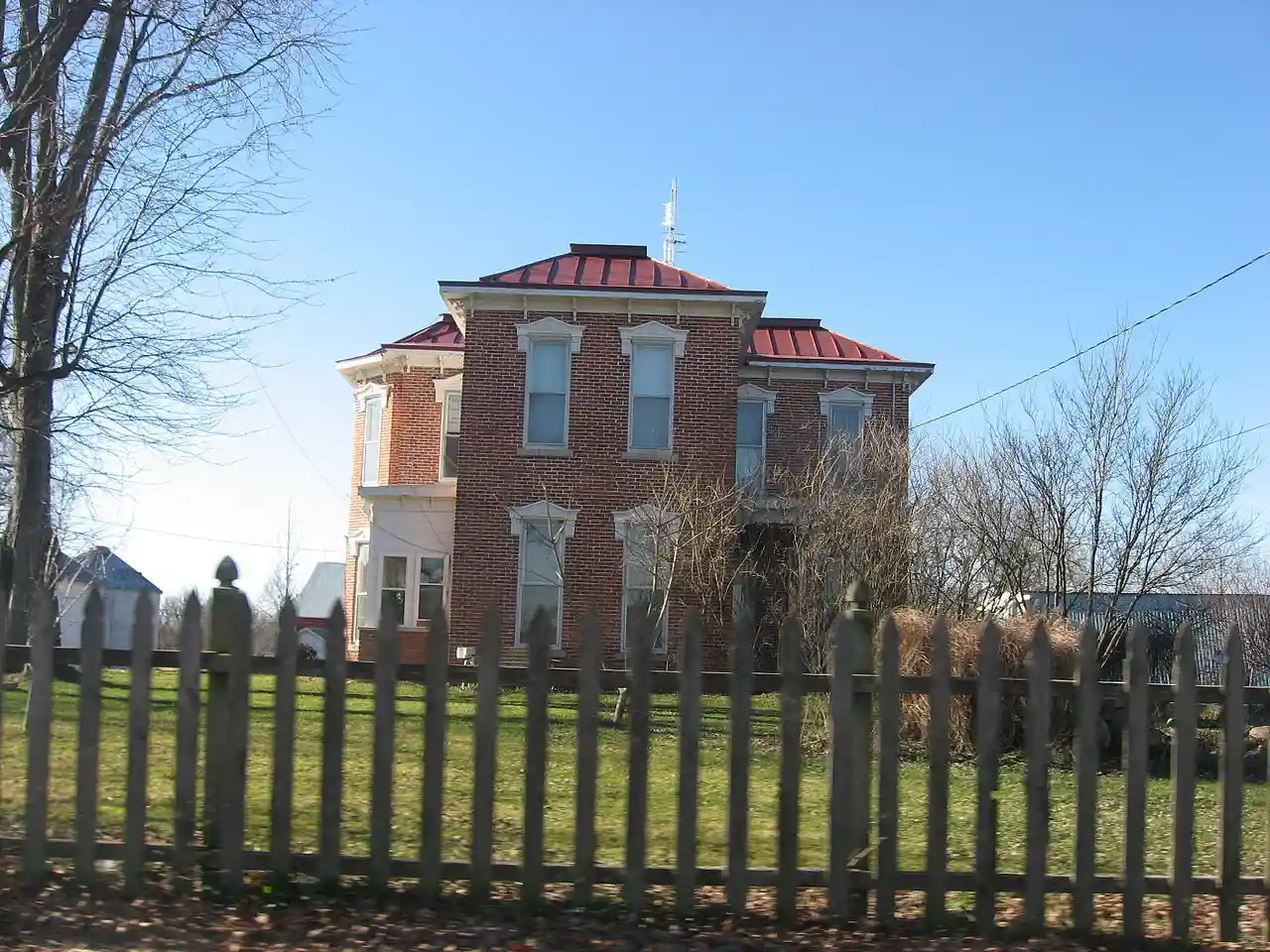 James Haines Farm is a historic home and farm located in Pike Township, Jay County, Indiana. The farmhouse was built in 1884, and is a two-story, Italianate style brick dwelling. It sits on a limestone block foundation, has a low pitched hipped roof, and features a five-sided projecting bay. Also on the property are the contributing summer kitchen, utility shed, large stock barn, long poultry house, privy, small stock barn, and a brooder house. Note: This includes and Accompanying photographs. Read more on Wikipedia