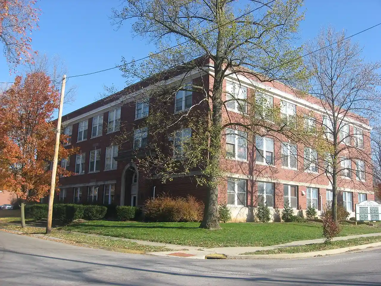 Franklin Senior High School, also known as the Alva Neal Community Building, is a historic high school located at Franklin, Johnson County, Indiana. It was built in 1938, and is a three-story, L-shaped, red brick building with some Italian Renaissance style embellishments. Its construction was partially funded by a grant from the Public Works Administration. It was originally connected to an older school building by a covered walkway. The building ceased use as a high school in 1960. Note: This includes and Accompanying photographs. Read more on Wikipedia